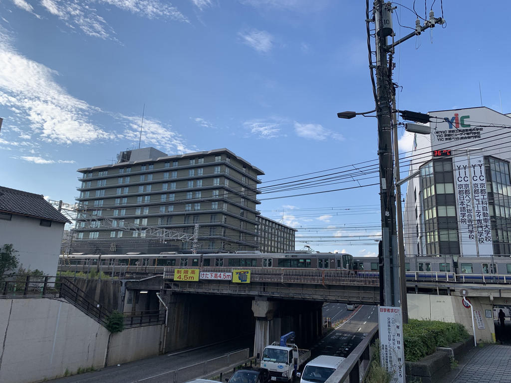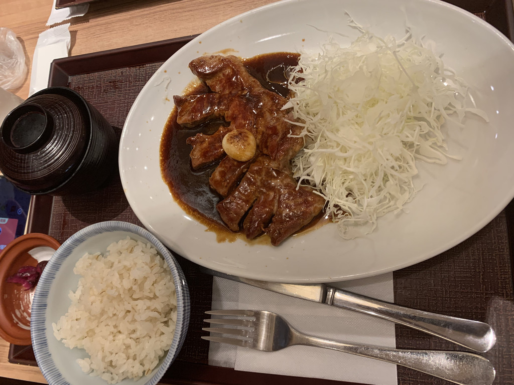游览完岚山后,天色已不早,于是我们坐车前往京都的酒店下榻。这次入住的酒店是京都八条都酒店。临近到酒店之前,我拍摄了名侦探柯南动画片中出现的京都站和京都塔的同款场景。晚餐是在酒店附近吃的是猪排、牛排加上米饭等的定食,量非常大,一个人都有些吃不下了。
