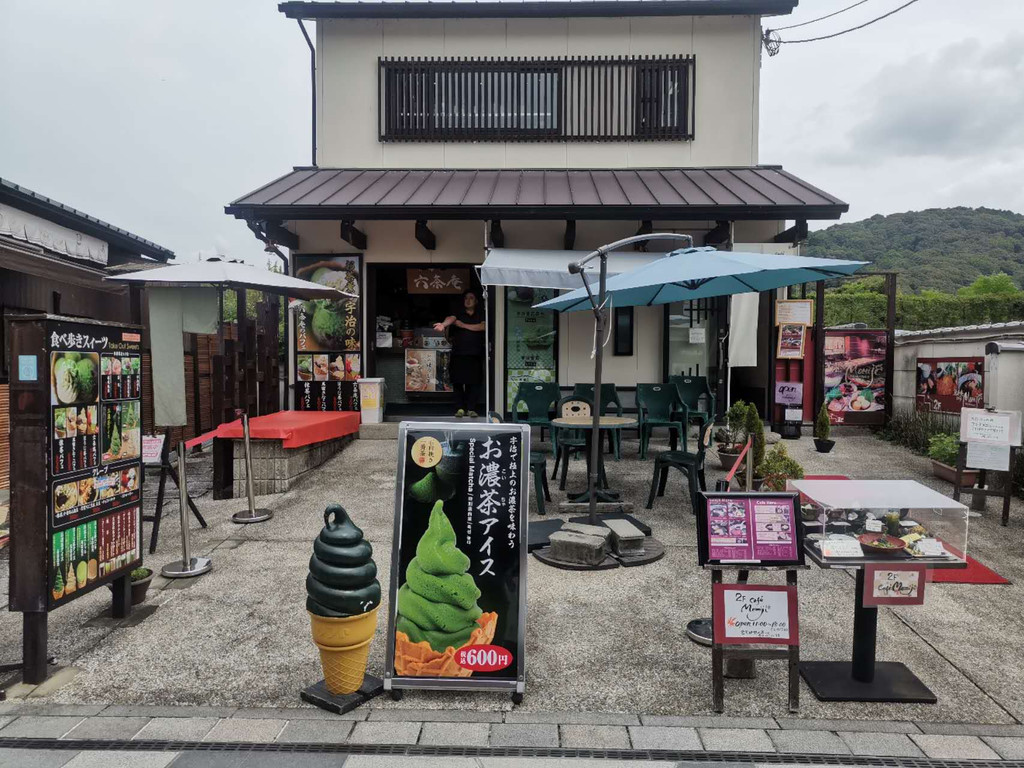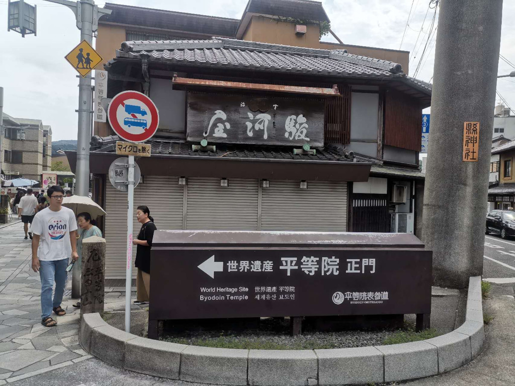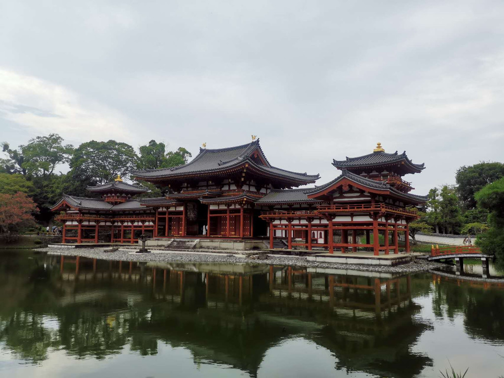 接着,我驱车前往位于京都南部的宇治市吃午餐,午餐用的是非常具有当地特色的抹茶荞麦面和炸天妇罗。下午首先参观了平等院。平等院位于日本京都府郊区宇治市,是平安时代池泉舟游式的寺院园林。其址可谓风水宝地,前临宇治川,远对朝日山。贞观年间嵯峨天皇的儿子、左大臣造园家源融据此开创别墅。