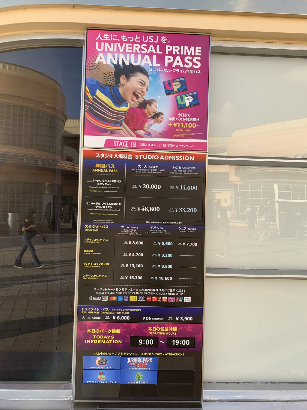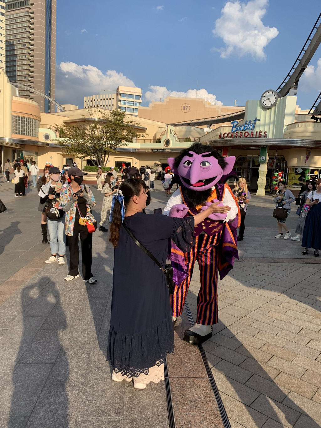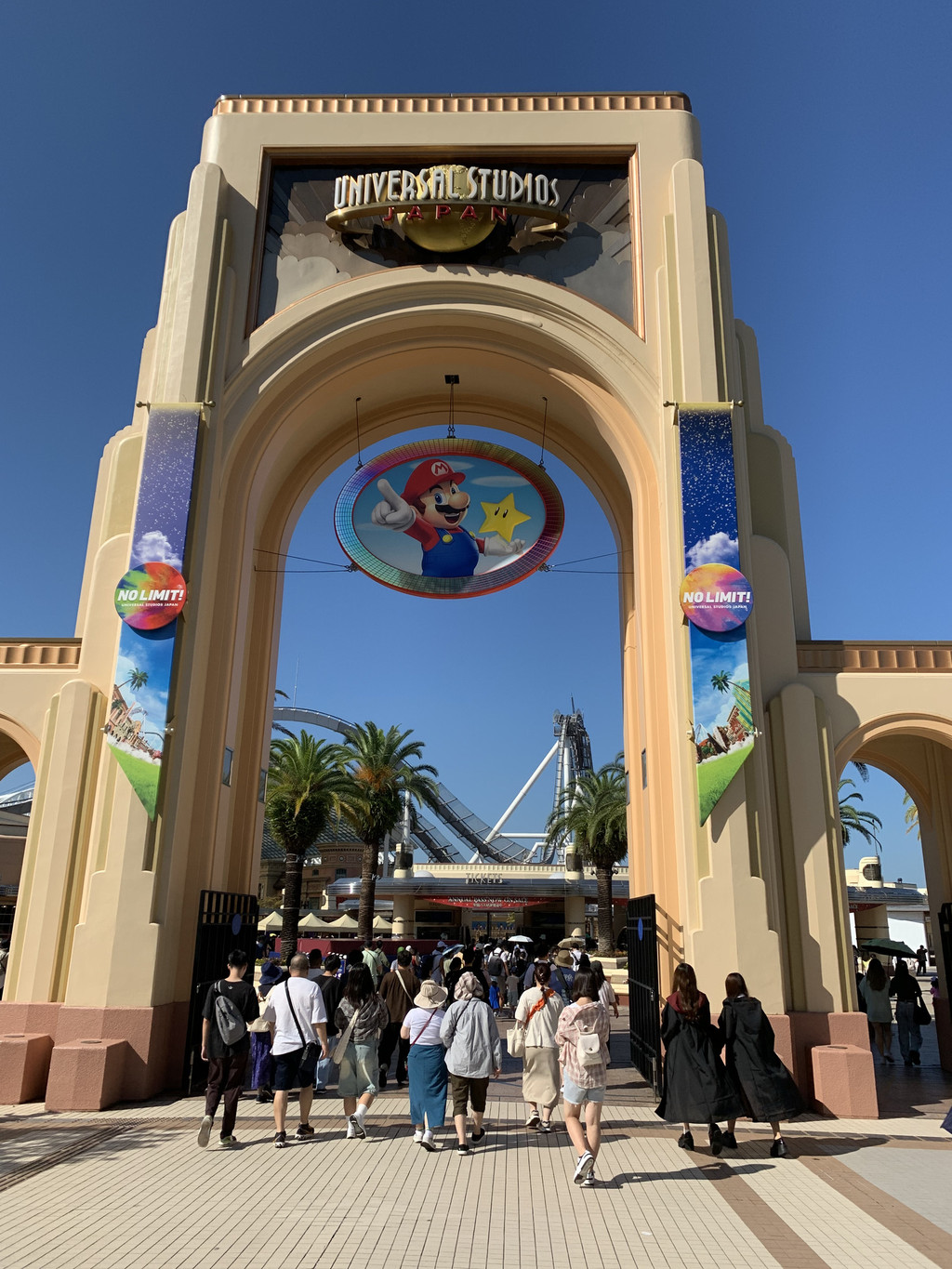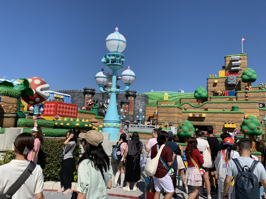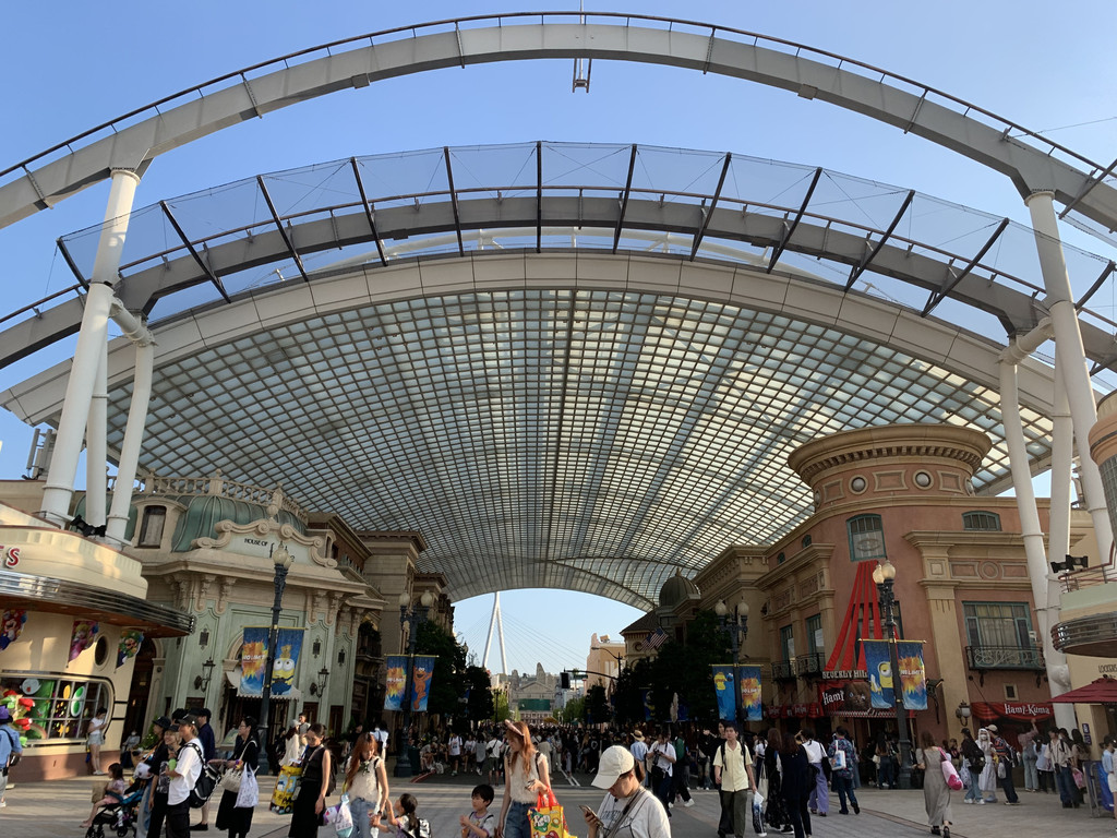 第六天的一整天,我去了位于大阪此花区的日本环球影城(Universal Studios Japan)。大阪环球影城,1998年10月28日由美国动作演员、加州州长阿诺德·施瓦辛格主持动工仪式,2001年3月31日开幕。作为一座电影主题游乐园,影城中拥有各种亲子娱乐设施、还有日本特色卡通人物,分为纽约区、好莱坞区、旧金山区、哈利·波特的魔法世界、水世界、亲善村、环球奇境、侏罗纪公园8个区域。