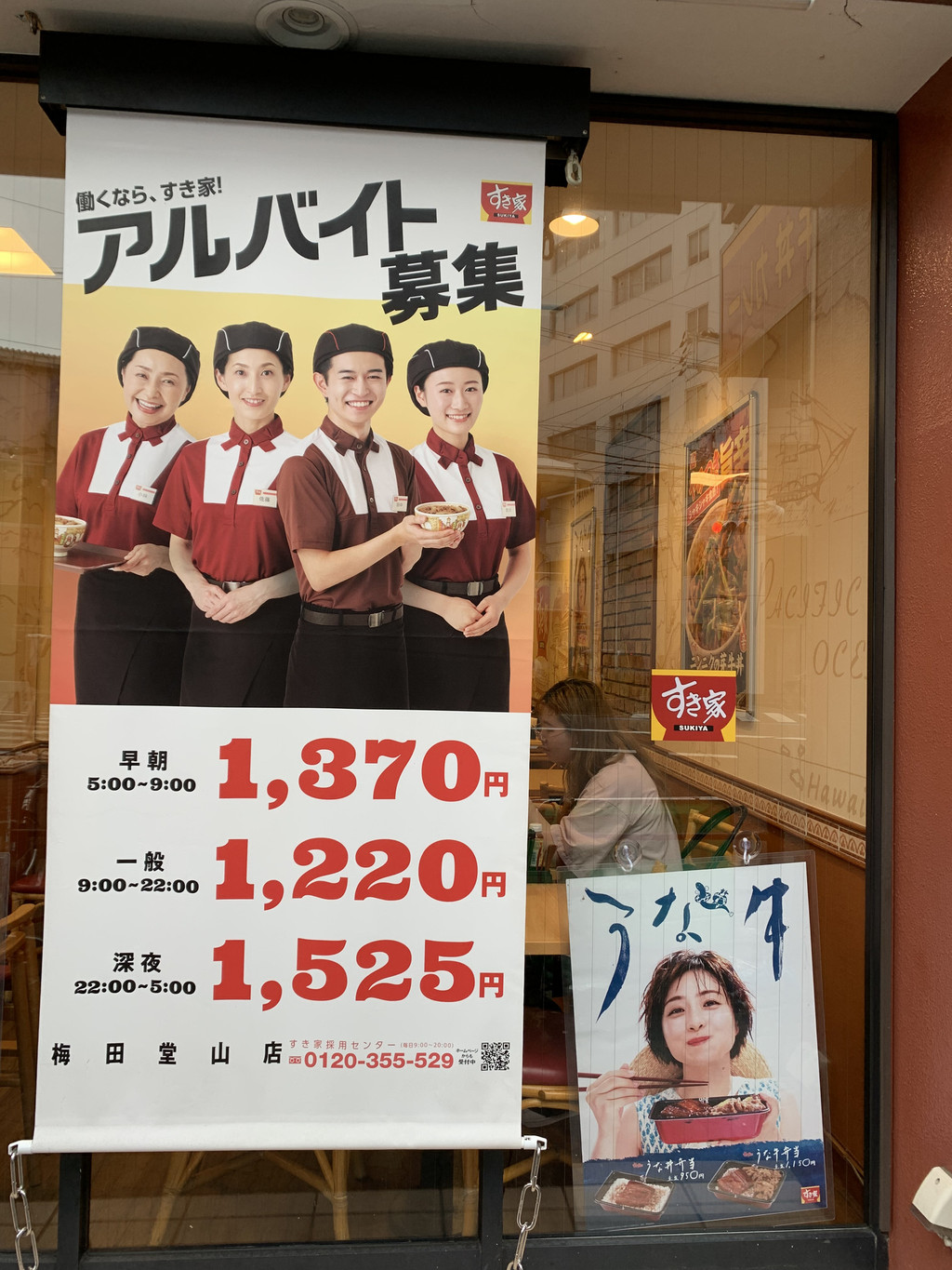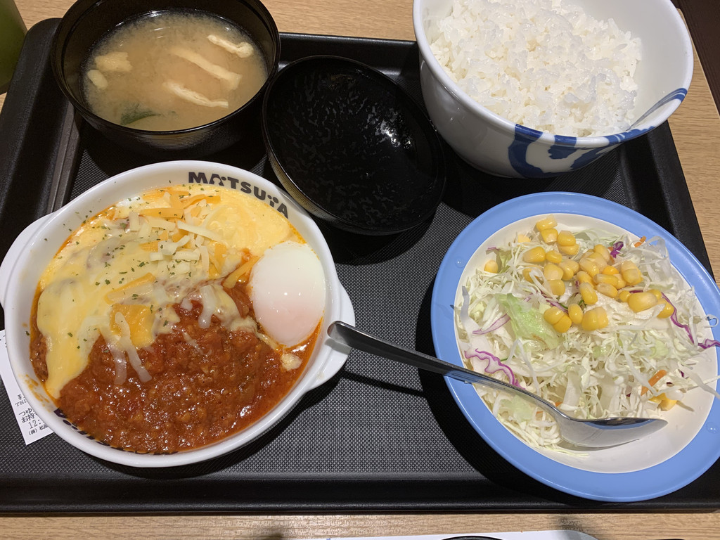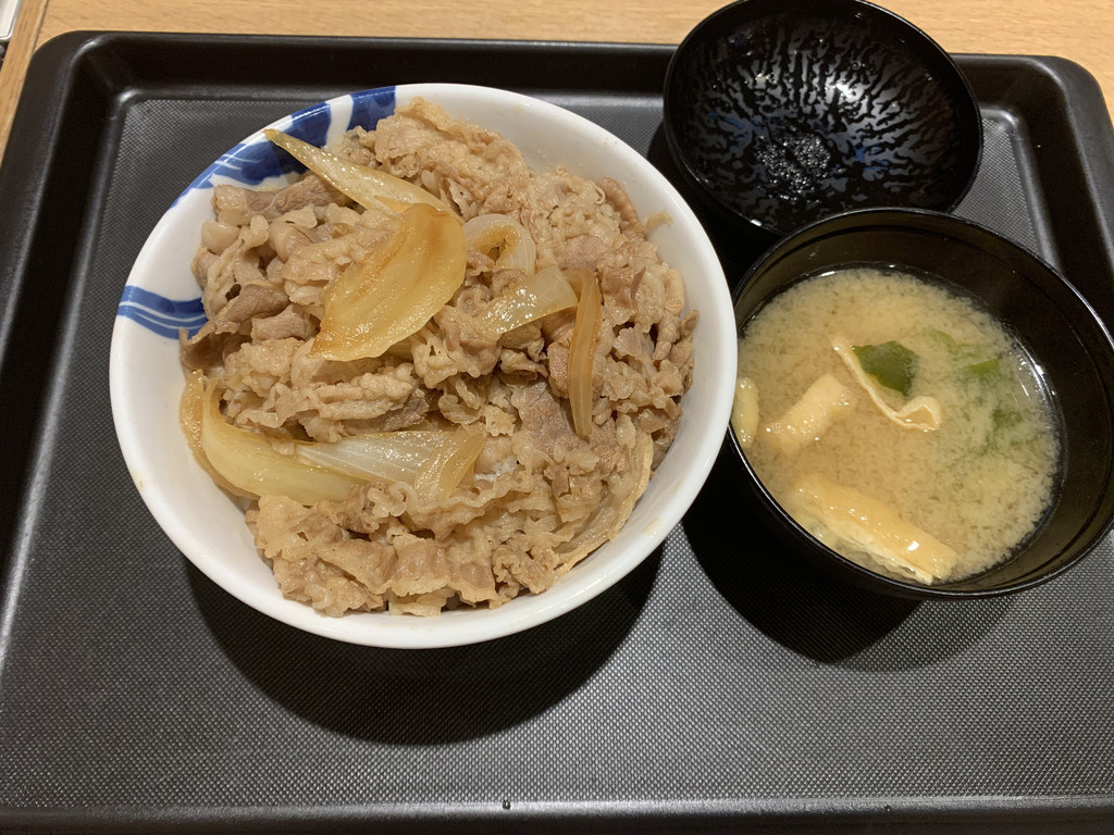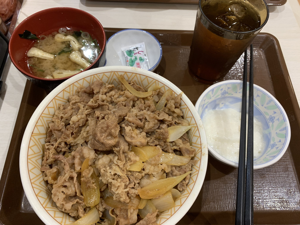 午餐,是去日本连锁的松屋店吃的盖浇饭,上餐比较快,价格也并不贵。同我们在一起吃饭的基本上都是上班族们。