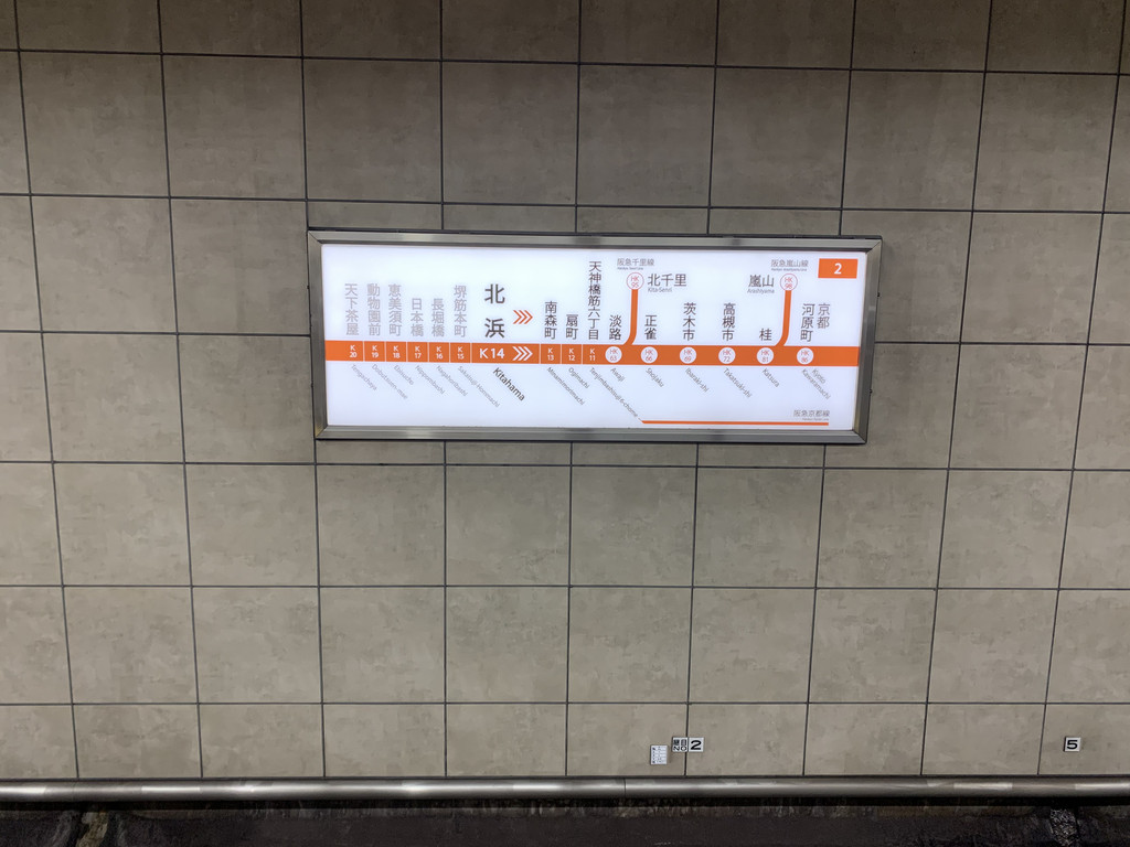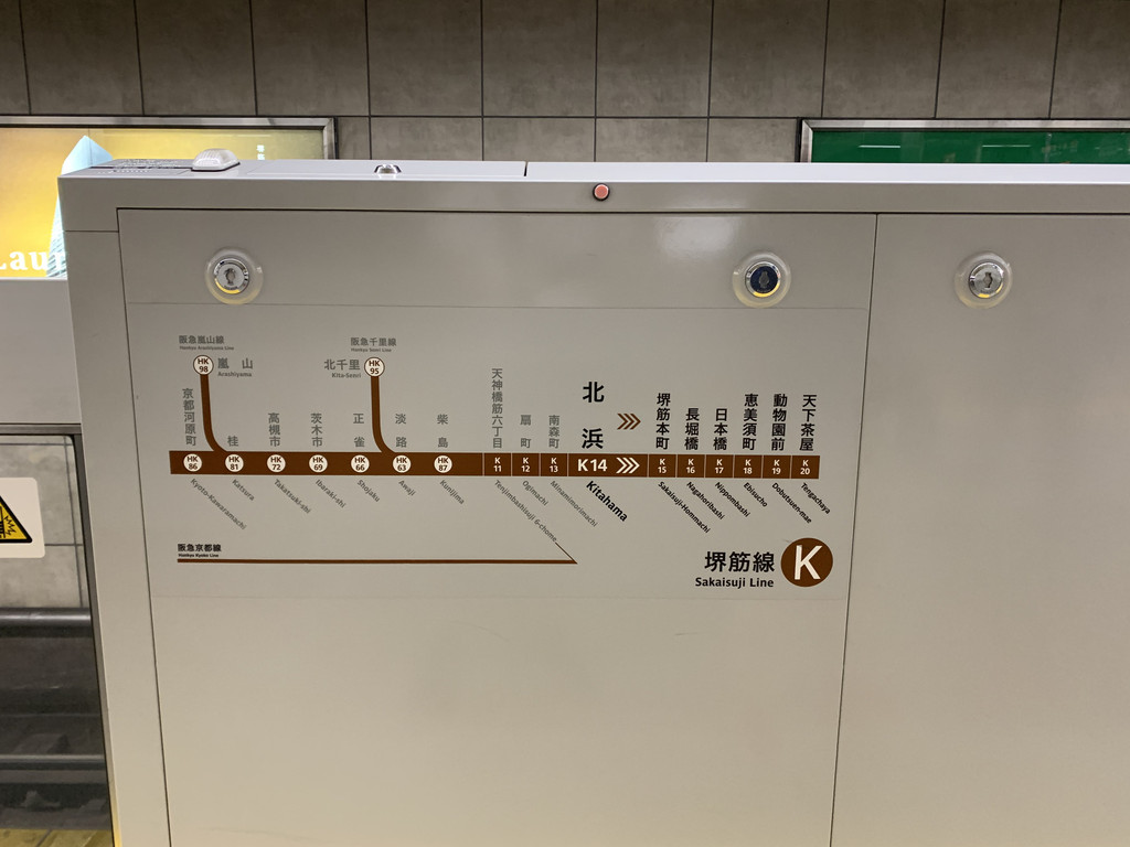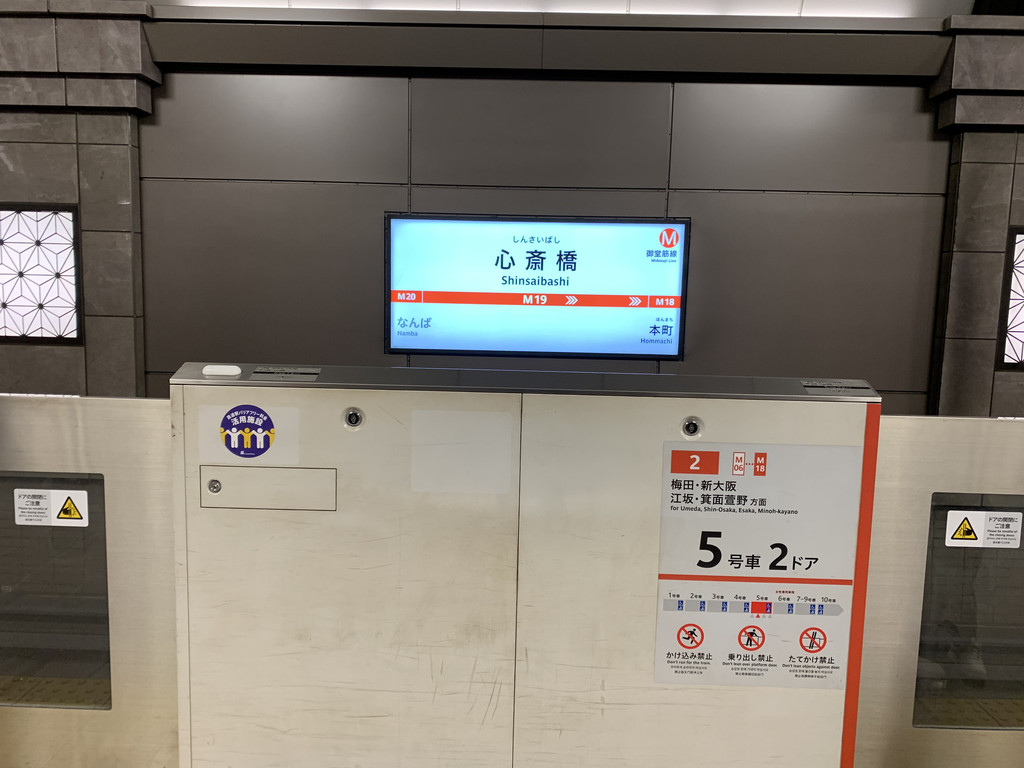 走了大约一站路,终于看到了大阪地铁御堂筋线的淀屋桥站,于是,买了地铁票,乘坐地铁前往心斋桥。