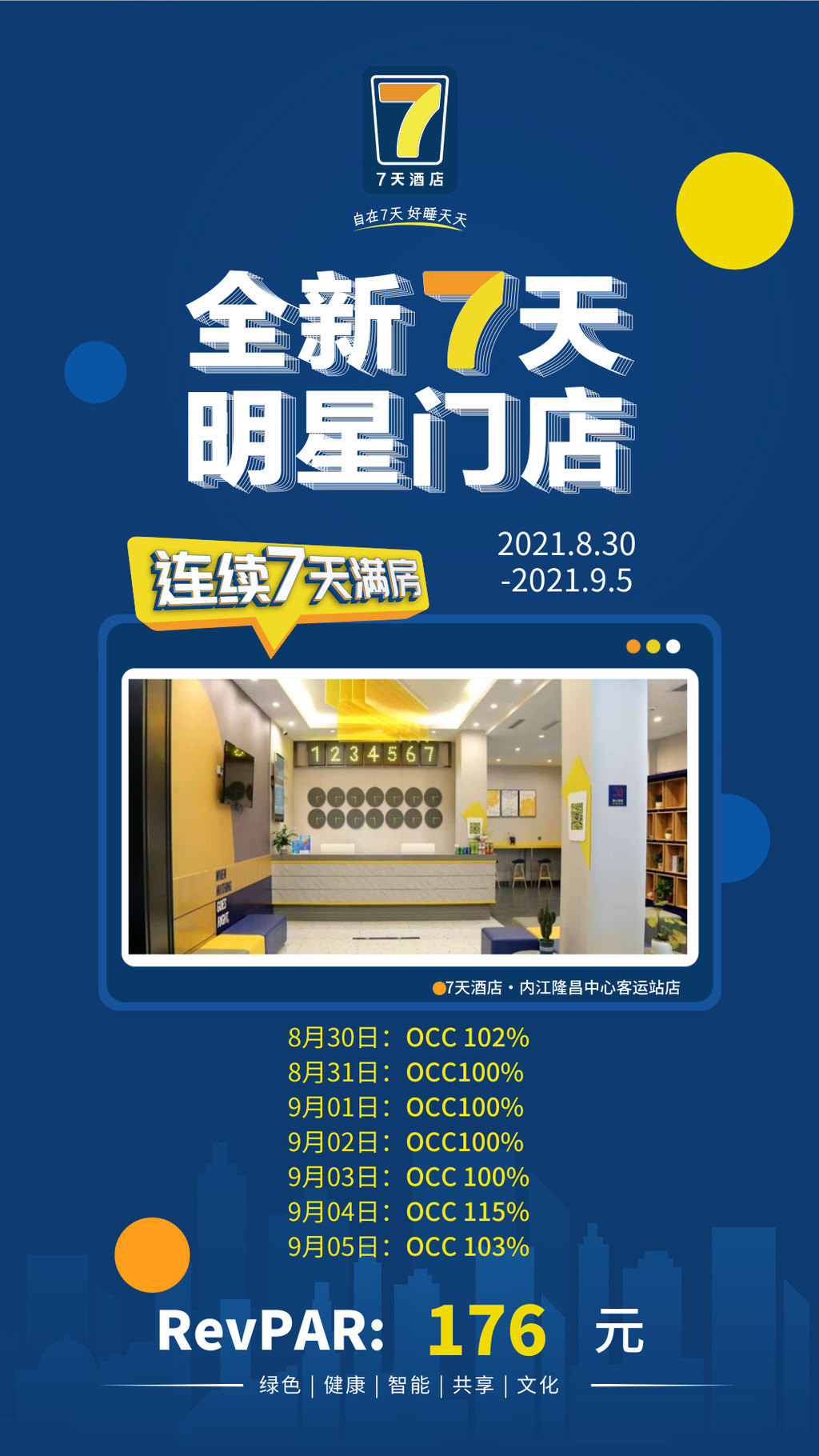 数据显示,7天酒店·内江隆昌中心客运站店开业以来业绩出色:不仅RevPAR已达到176元,8月30日至9月5日更是连续七天满房,9月4日还创下了115%的单日出租率数据,在内江经济型酒店市场中优势明显。