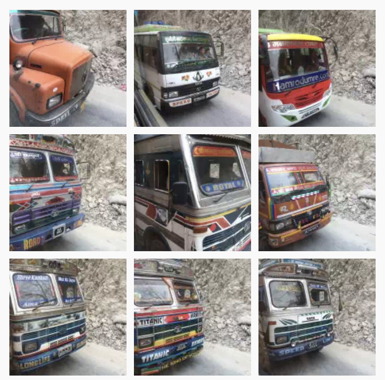 4月22日 从奇特旺回来的路上,修路,堵车,经过甘达基区,无聊时的随拍——各种热闹的车头,没有重样的…难道塞伯坦星球乡村的汽车人么