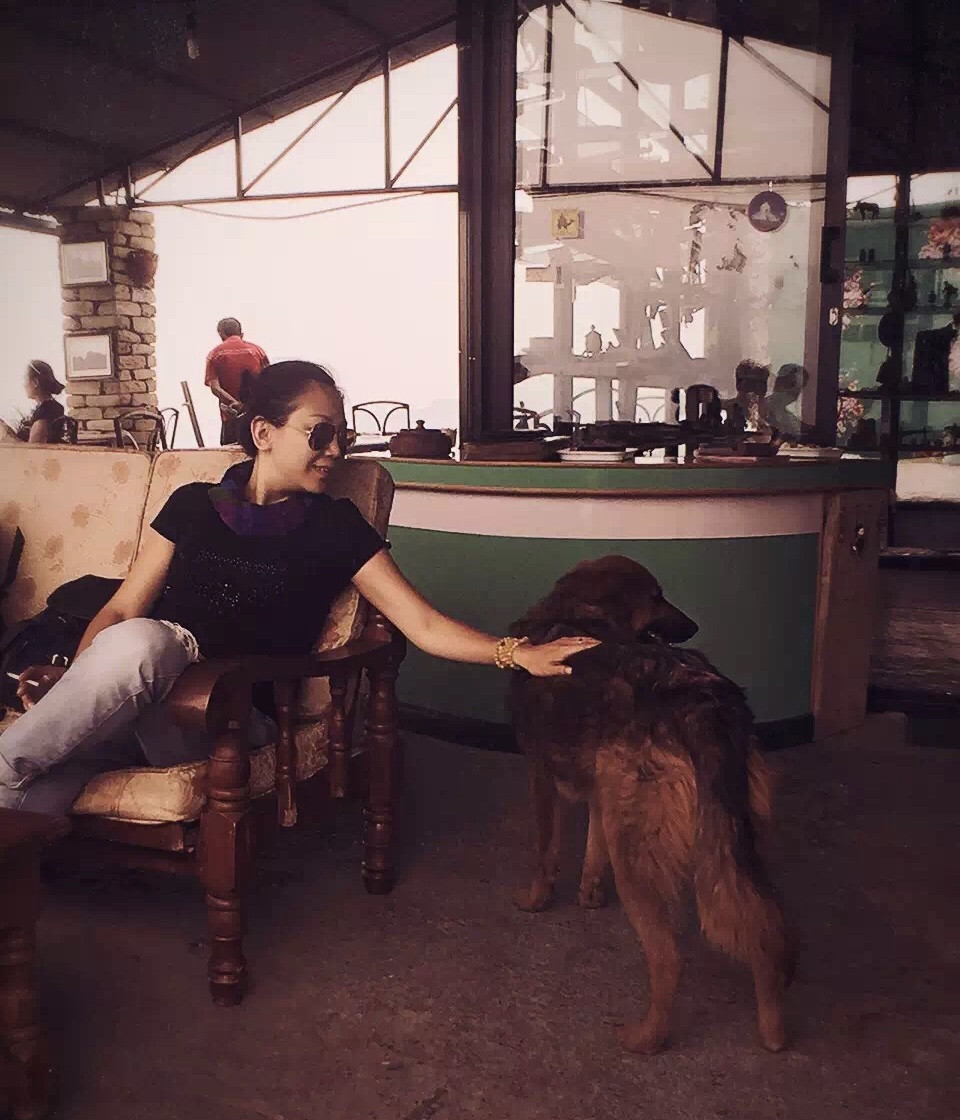 被这条温顺的大狼狗吸引了,顺便买杯红茶歇歇