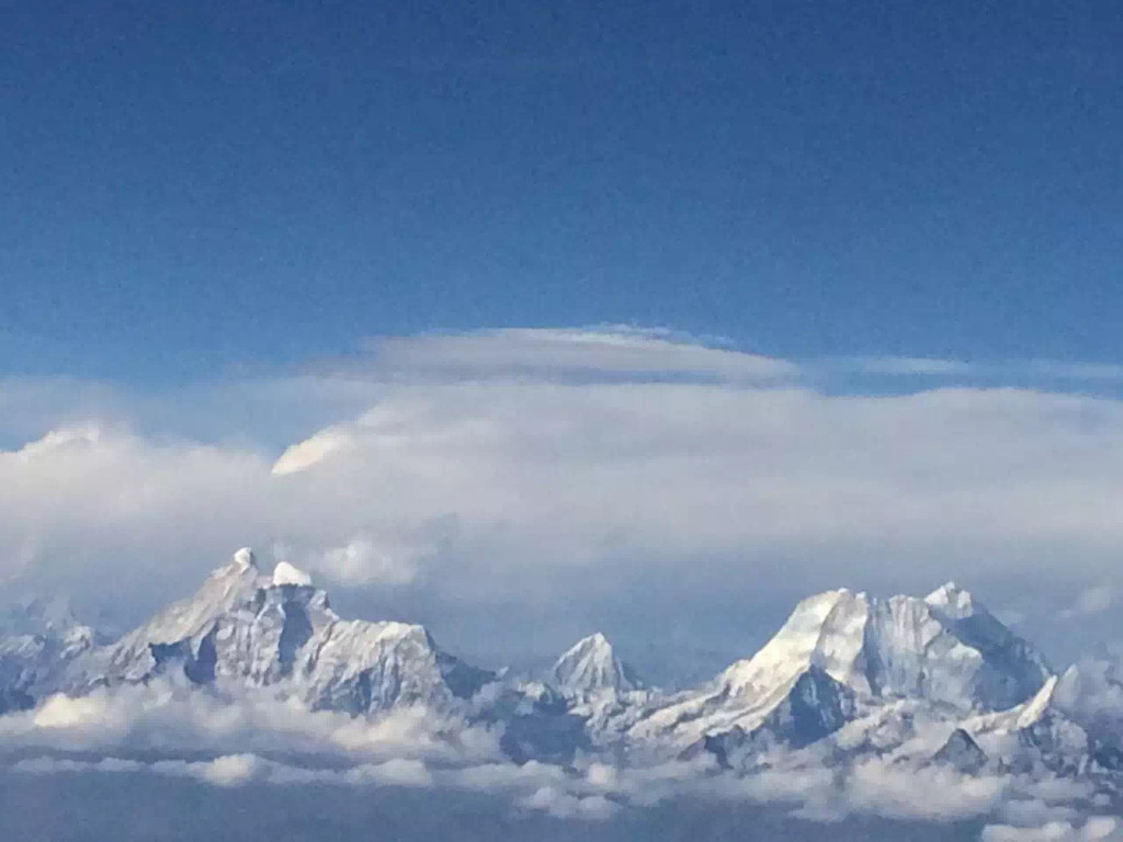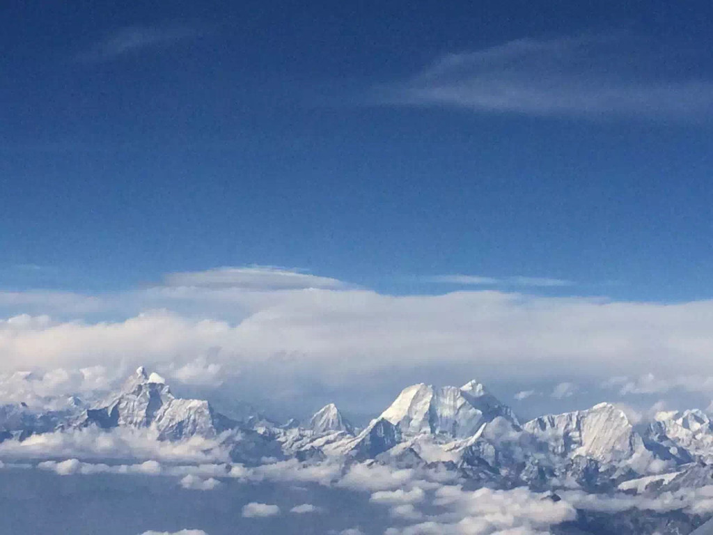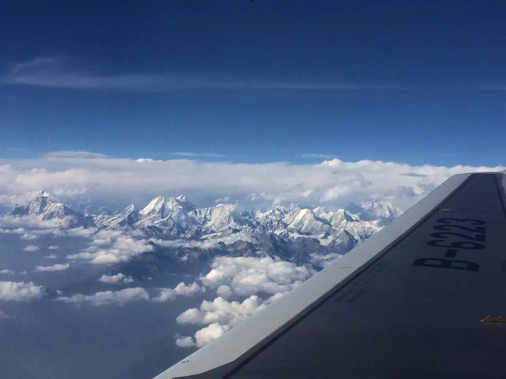 要说国航真是满满人情味儿,在快要经过珠峰的时候,空姐告诉大家坐在右边的可以看到鱼尾峰,也是可以拍照的,但不要全部坐到右面去,需要保持飞机的平衡,所以对于一直坐在右边靠窗的我来说也是幸运的,算是航拍吧!