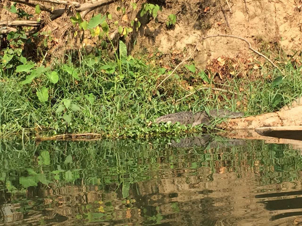 此刻静静地湖面,只有独木舟划过的水声,与鳄鱼擦肩而过,紧张啊……