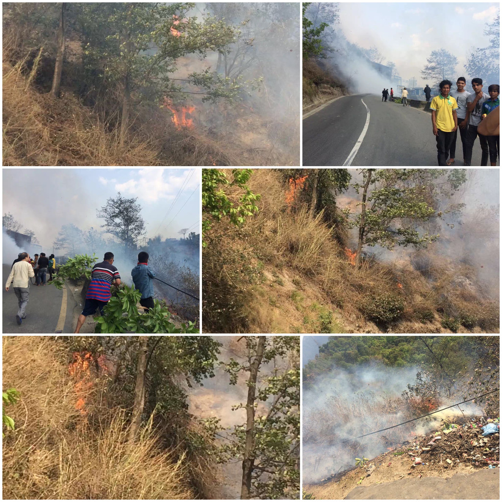 旅行就是各种经历~在回加德满都的路上,我们大巴车前方100米处浓烟滚滚,着火了……火势蔓延,我们被困了,等待消防车……