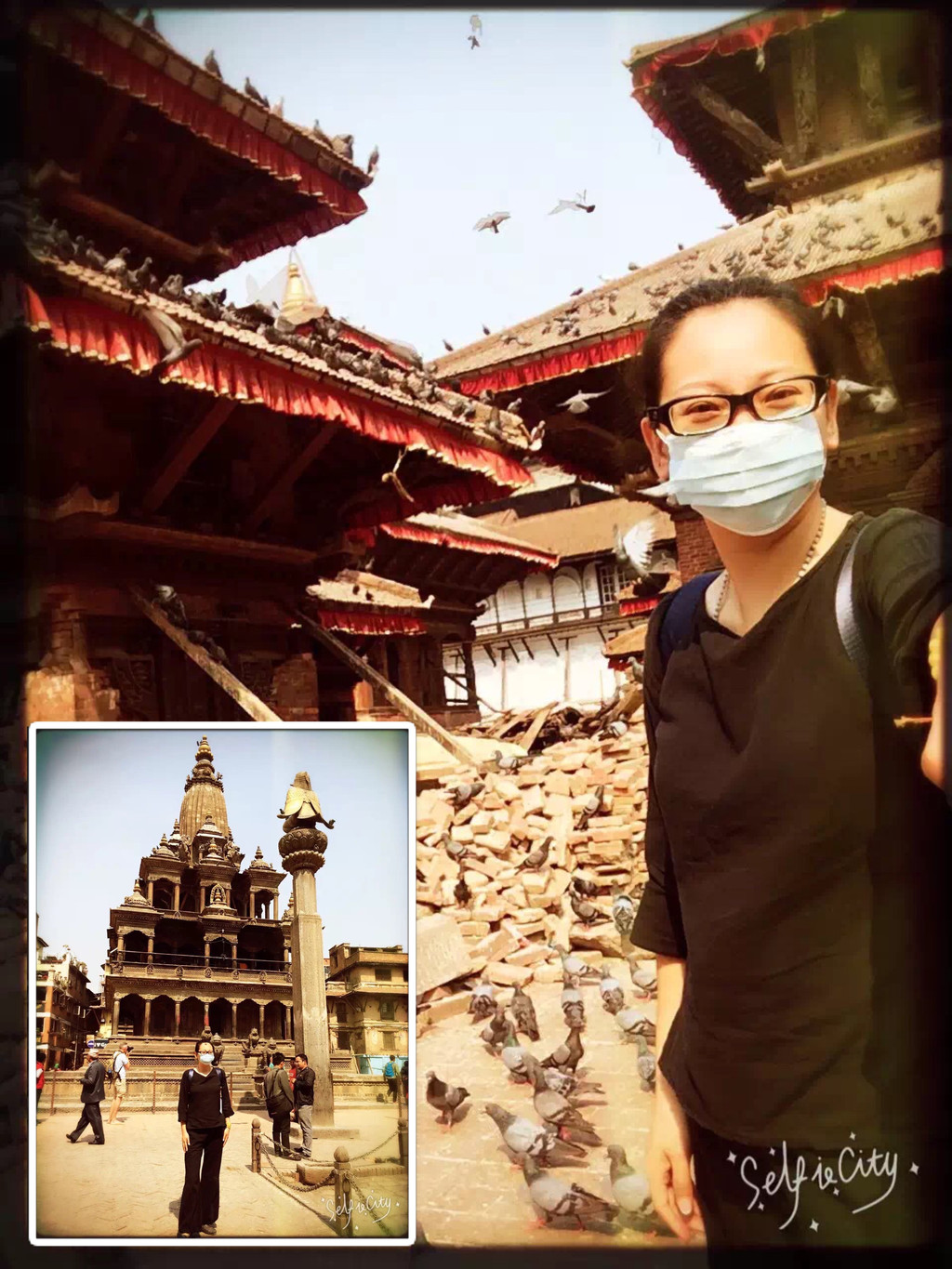 加德满都的空气很不好,还是带个口罩比较踏实,但我的眼睛却过敏了,红的像只兔子
