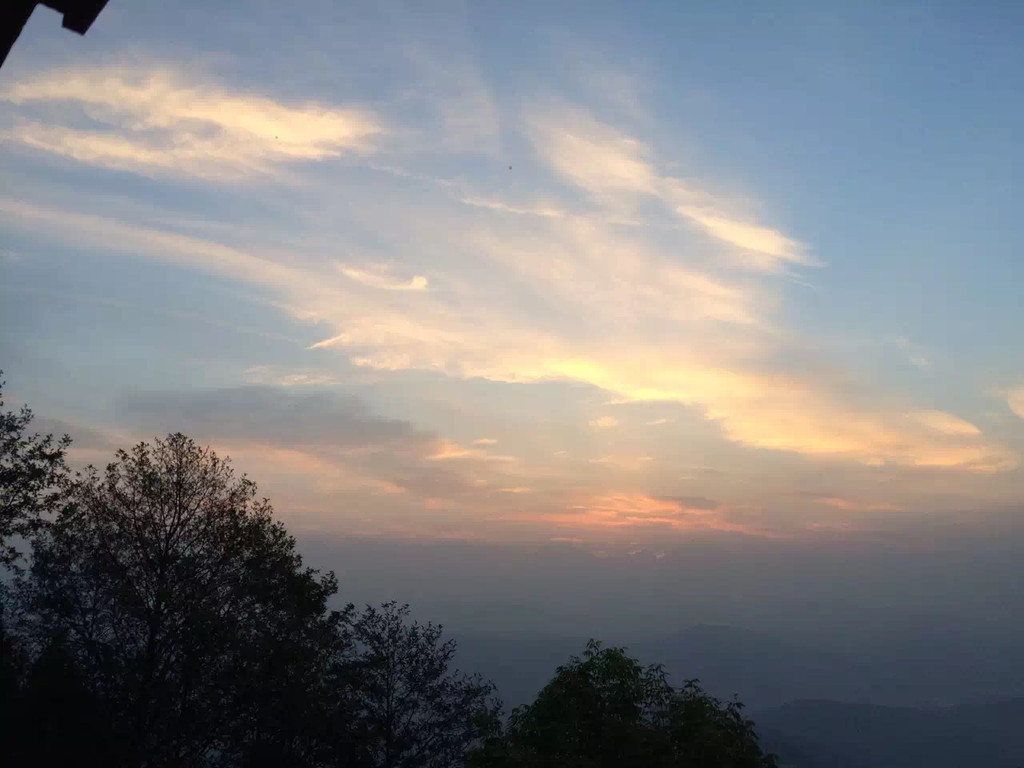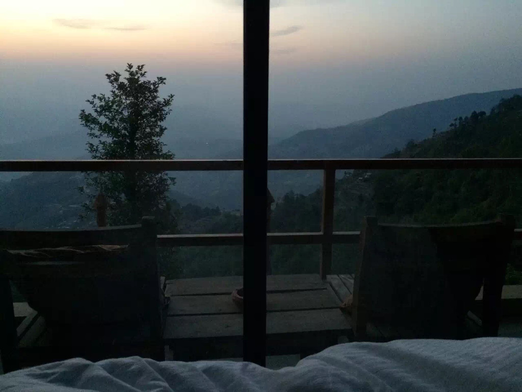 可以躺在床上看日出……因为山上的木屋很minii,我的床挨着阳台,所以早上伸脚就能拉开窗帘,突然有种想透透气的念头,于是裹着被子站在了阳台上,深吸了几口空气,晨时的瑟瑟带着满山植被的清新,让我顿时困意全无,点支烟望着远方,等着……(有一段清晨山间的视频,研究半天也不知道怎么发上来)