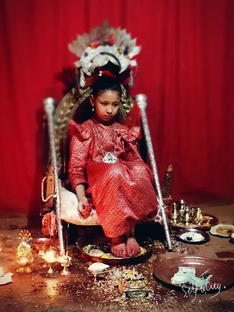 女孩一旦被选中成为活女神后,就离开了世俗生活,离开了正常人的轨迹,终日生活在库玛里庙中,开始她极为荣耀却而又孤独的活女神生涯,接受世人的朝拜。“活女神”无论什么时候脚都不能沾地。