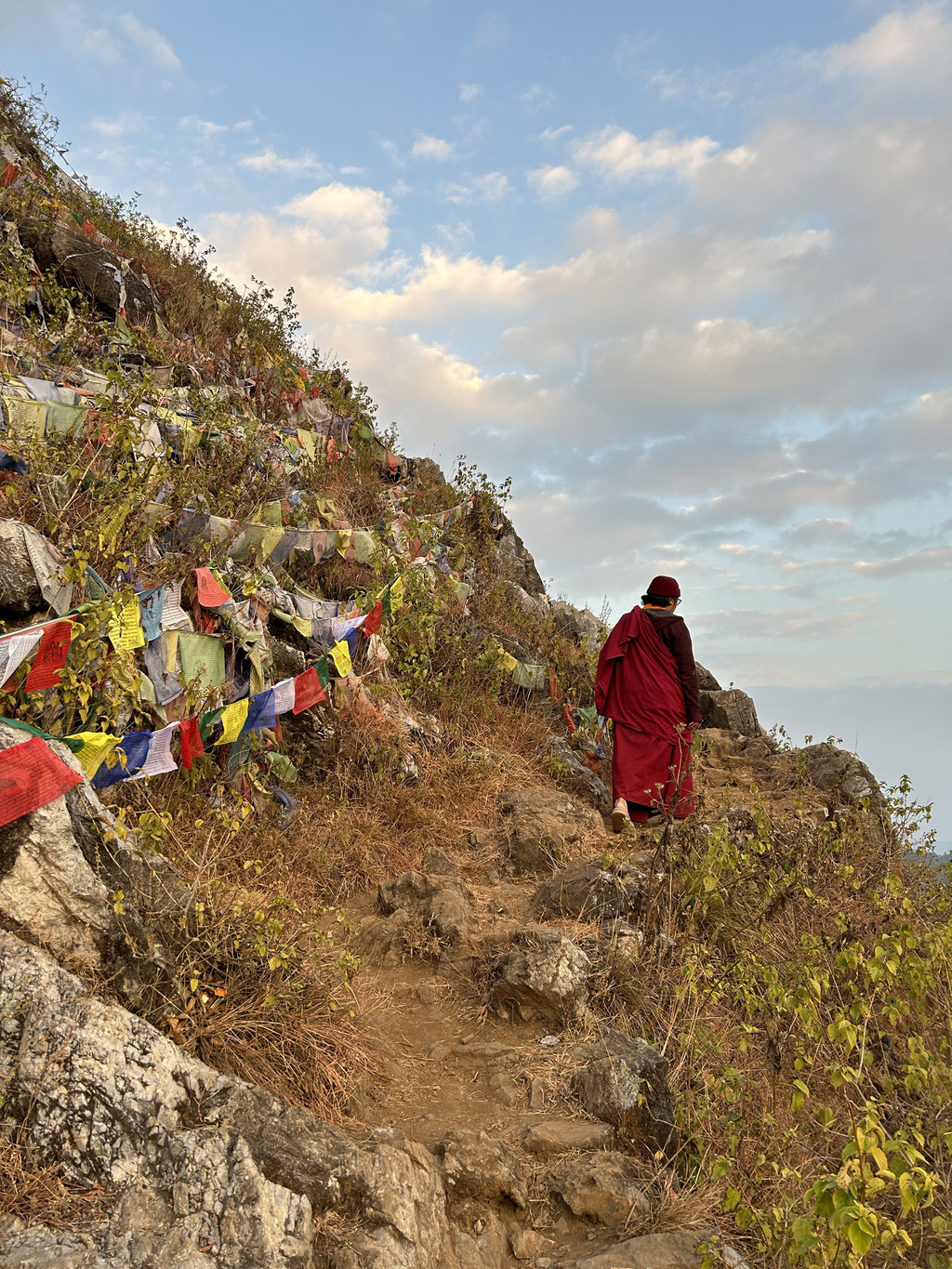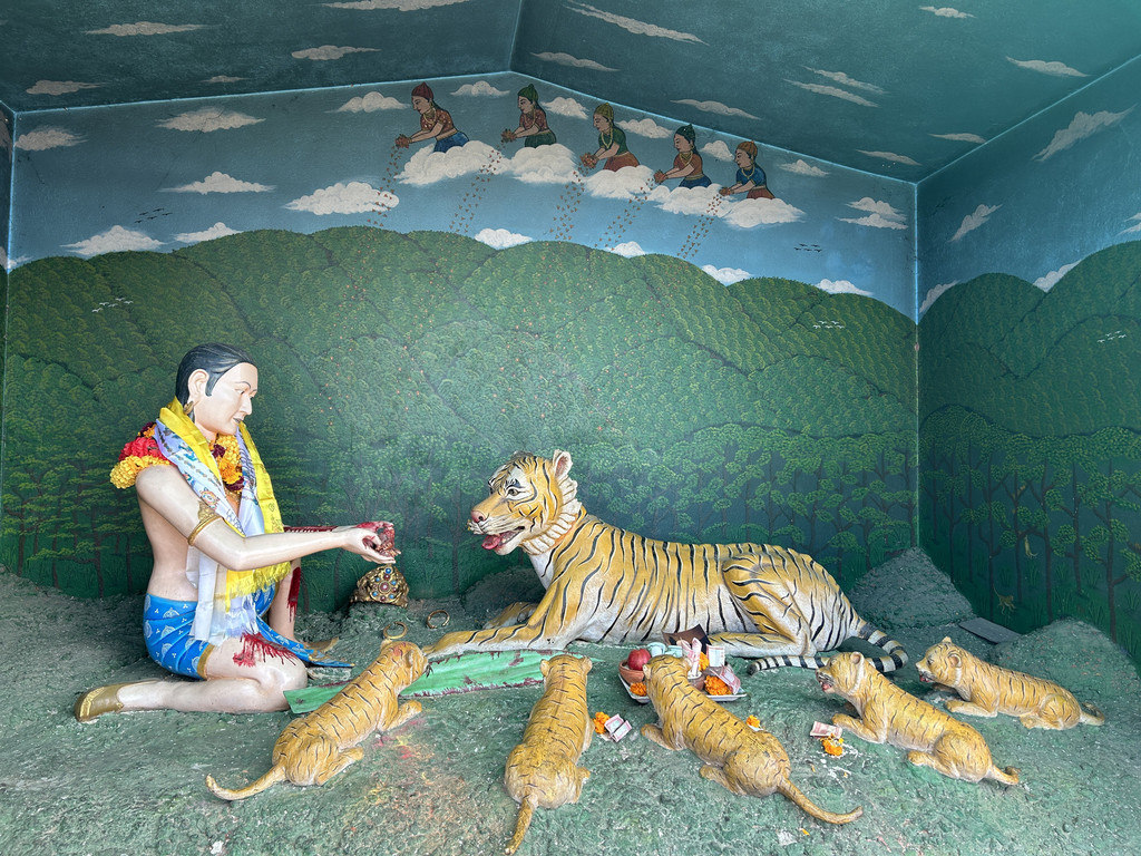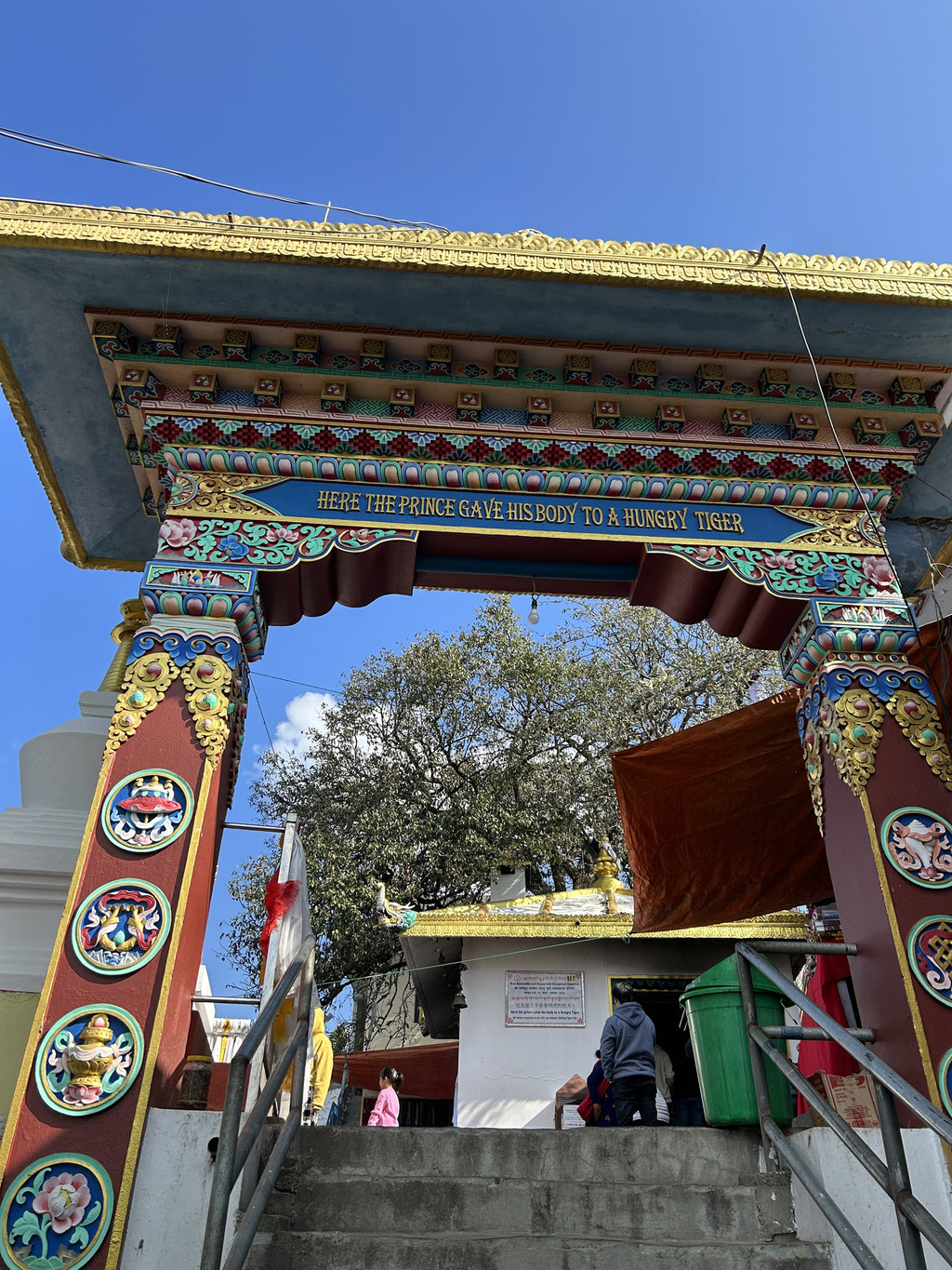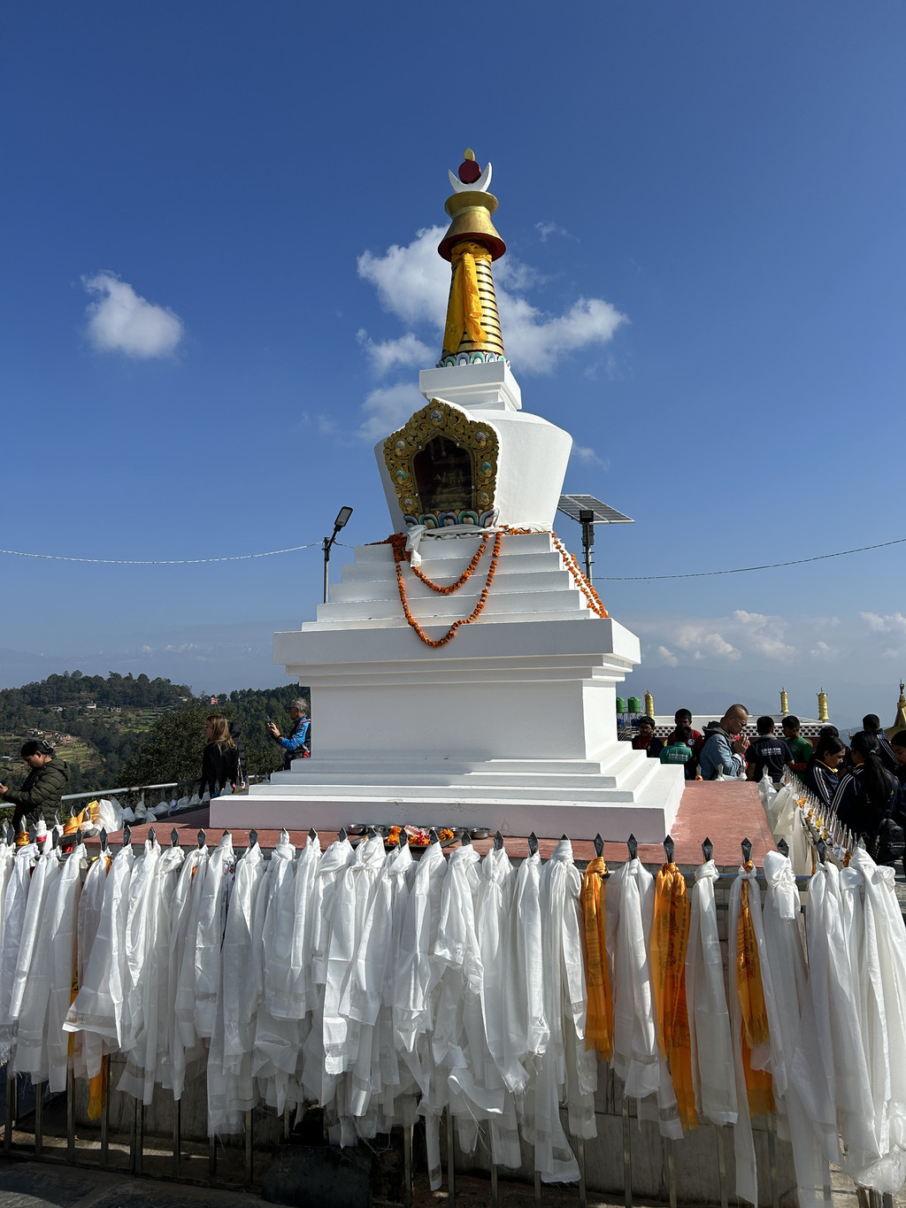 第三天一早,从酒店乘坐出租车前往40多千米外的南无布达 (Namo Buddha)。南无布达又名舍身崖,是尼泊尔三大佛塔之一,是释迦牟尼佛在菩萨地修行时舍身喂虎,圆满布施波罗蜜的圣地,也是世界各地佛教徒来到尼泊尔都会朝拜的圣地。其内供奉有释迦牟尼佛前世修行时舍身喂虎的遗骨舍利, 亦名“施身塔”。最初释迦牟尼佛宣说舍身喂虎的事迹,则是在鹿野苑为五比丘所宣说,舍身喂虎则代表释迦牟尼佛身为菩萨位修行时的布施圆满,对佛教徒及信众就是修持舍心。