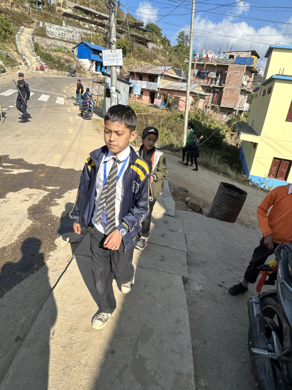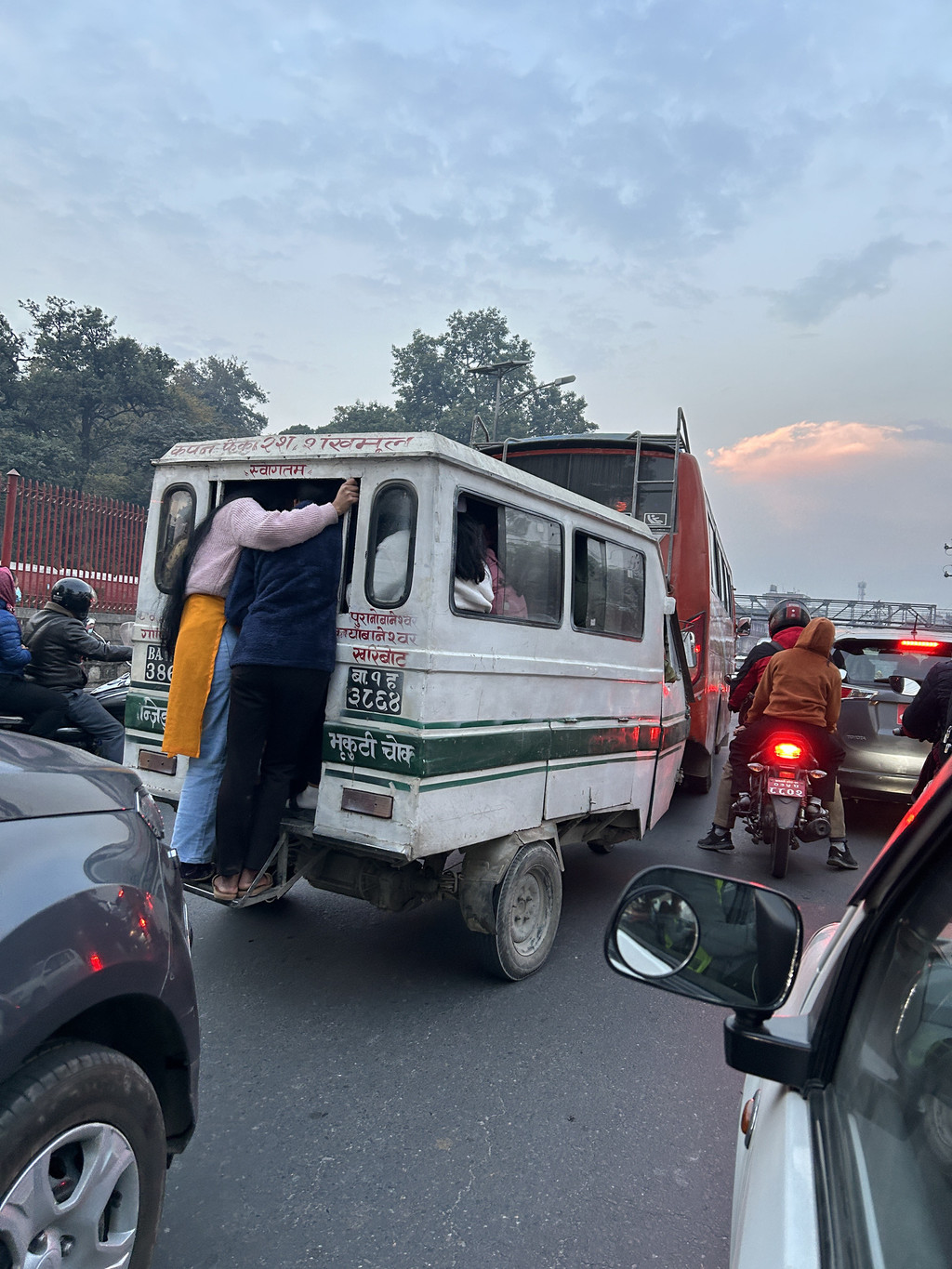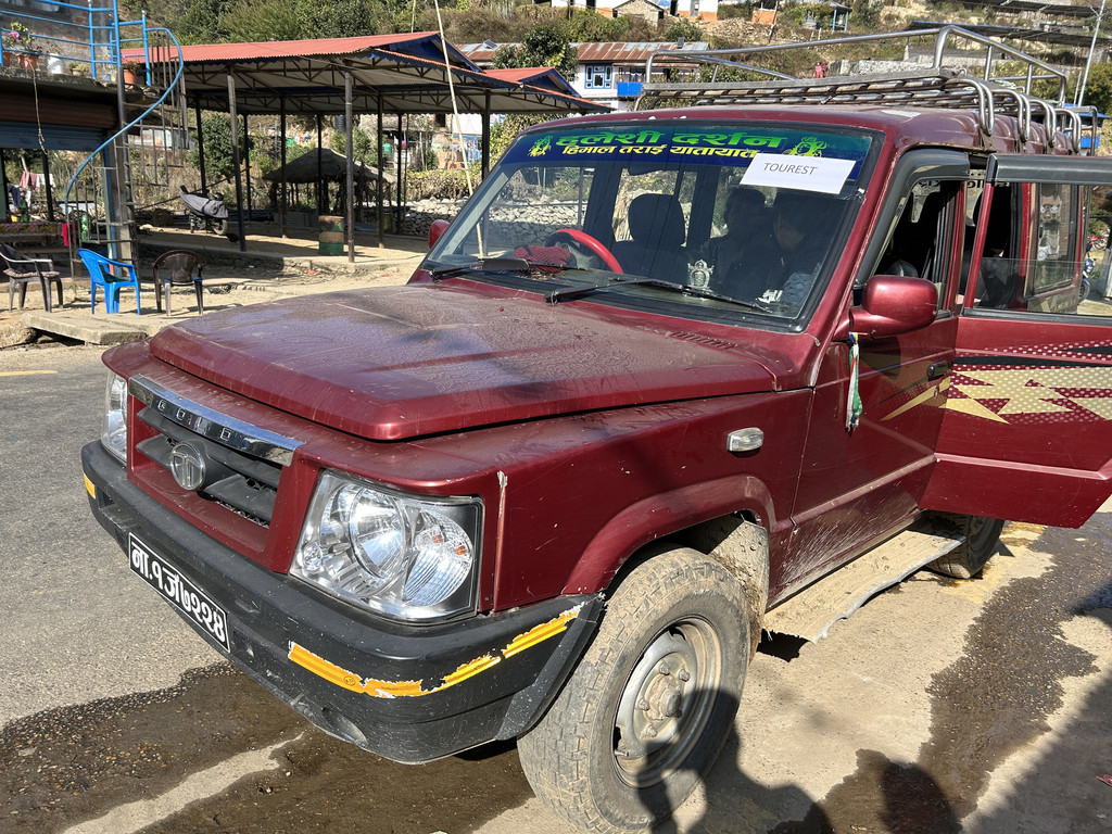 接下来的三天是此次行程中最艰苦的,我们提前一天在加德满都博达哈大佛塔附近的一家旅行社购买了前往玛拉蒂卡(Maratika)的车票。往返于两地间最主要的交通方式是乘坐吉普车,车型是印度TATA载客10人(包括司机、副驾、后两排各4人),200多KM的路程历时9~10小时,沿途加油、吃饭、休息4次,安全检查打卡点停车N次。从加德满都一路向东全是山路,路况相当于我国上世纪八、九十年代山区公路的水平,大部分是砂土路面,只有一小段已修成沥青路面,有几个山谷路段还得涉水通过,双向车辆在狭窄的山路上交会时小心翼翼,让我们见证了尼泊尔司机极高的驾驶水平。乘车途中我的运动手表自动记录的是室外骑行,不同路段的平均速度在16~30KM/小时。在21世纪的中国,如此艰难的行程已极为罕见,在尼泊尔行走这样的路程也须坚强的毅力。