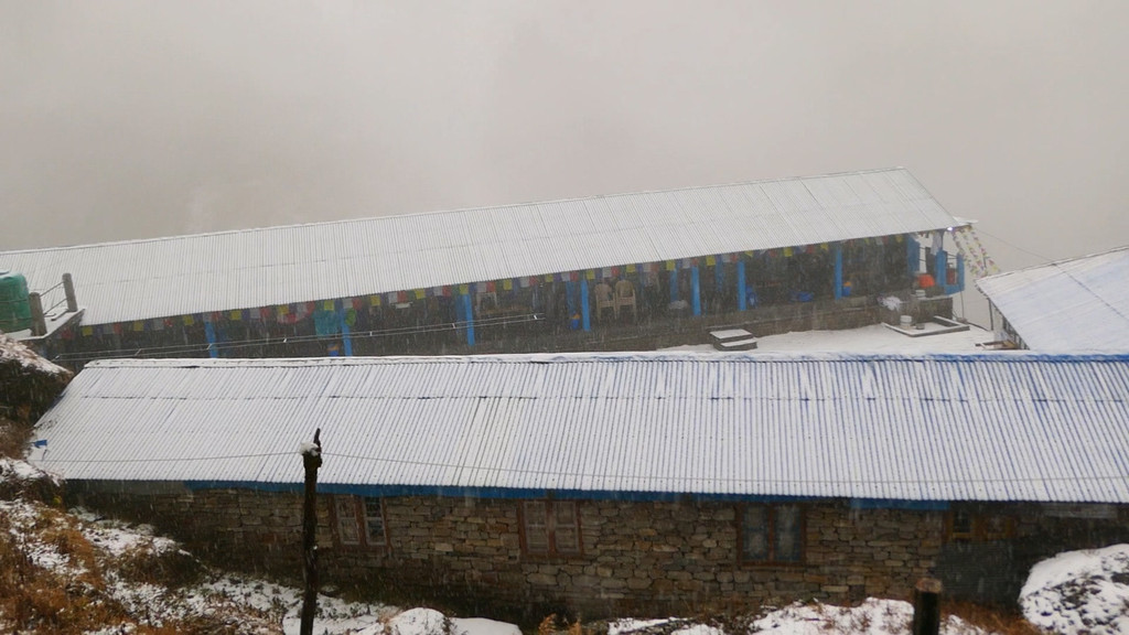 一整个下午,屋外的雪并没有减小的迹象,我们还在担心影响到明天的行程,向导开心说雪一定会停,让我们大可放心。好的,只是今晚睡觉仍然不好过,夜里的室温在-10度,我是全副武装,穿着全部保暖衣服钻进睡袋,收紧袋口只漏出嘴来呼吸,才度过了寒冷的一夜。