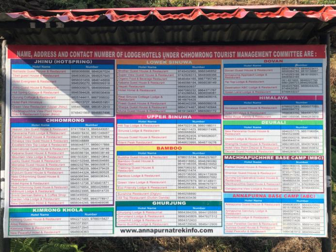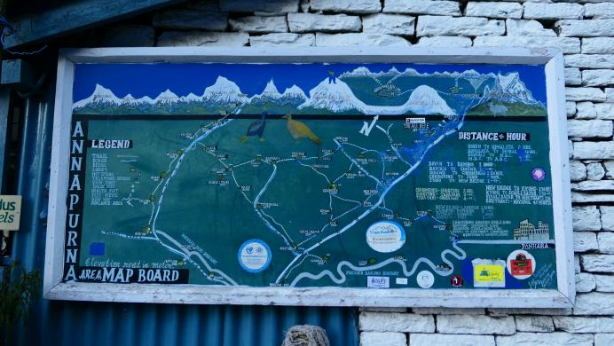 从今天开始,未来的两天行程将成为旅途的关键,今天将爬升到海拔3000+的deurali。从bamboo出发,行程不久就会来到dobhan村,这里能够遥望到鱼尾峰,我路过的时候心想,昨天要是多走两步住在这多好呀。这个村子里有许多很精致的手绘板报和装饰, 尼泊尔 人这种颇具文艺感的作品让我觉得非常喜爱,忍不住给它们多拍两张照片留存下来。