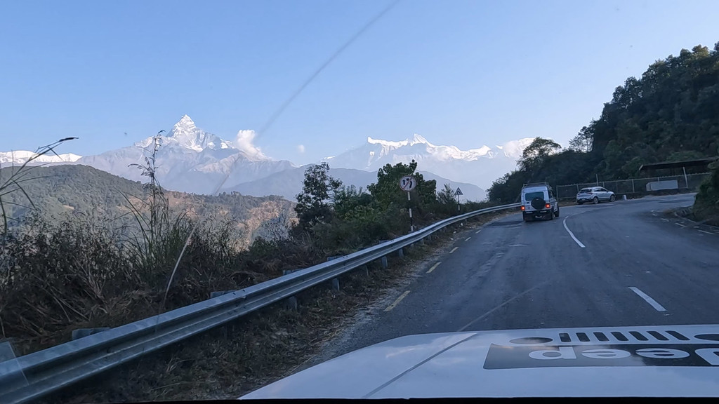 我们的团队有7名队员,1名向导,还有4名背夫组成。上午的行程非常简单,坐上吉普车,驱车进山前往出发地点jhinudanda。在车上我们又结识了第二位本地朋友——司机。