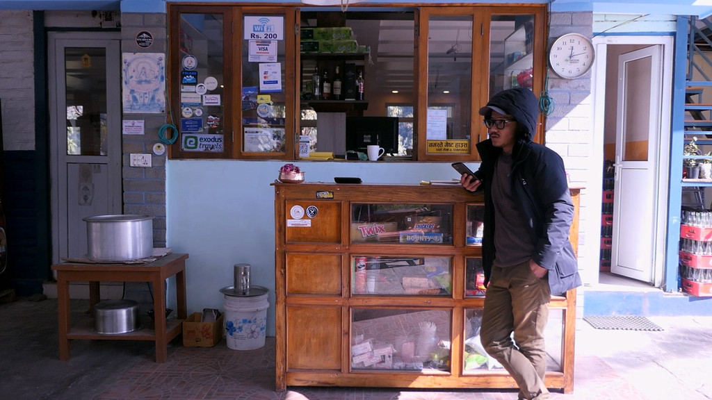 沿途碰到了同样上山的四个尼泊尔小哥,在问好之后我们有饶有兴趣的交谈了一会,似乎互相对对方的异域面孔有一种天然的好奇和友善。我向他们询问了一些尼泊尔当地的歌曲,想用作vlog的背景音乐,他们非常认真的帮我找了很多。他询问我是不是一名youtuber,我一时间哽住了不知道该怎么回答,算是个视频创作者吧但没什么粉丝,哈哈哈。