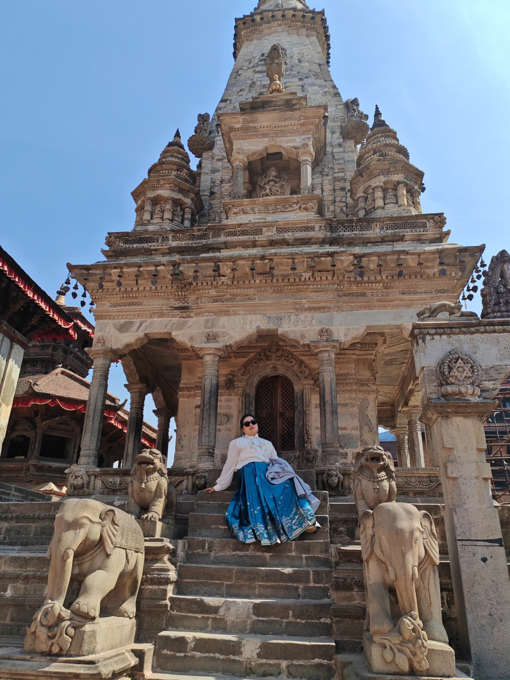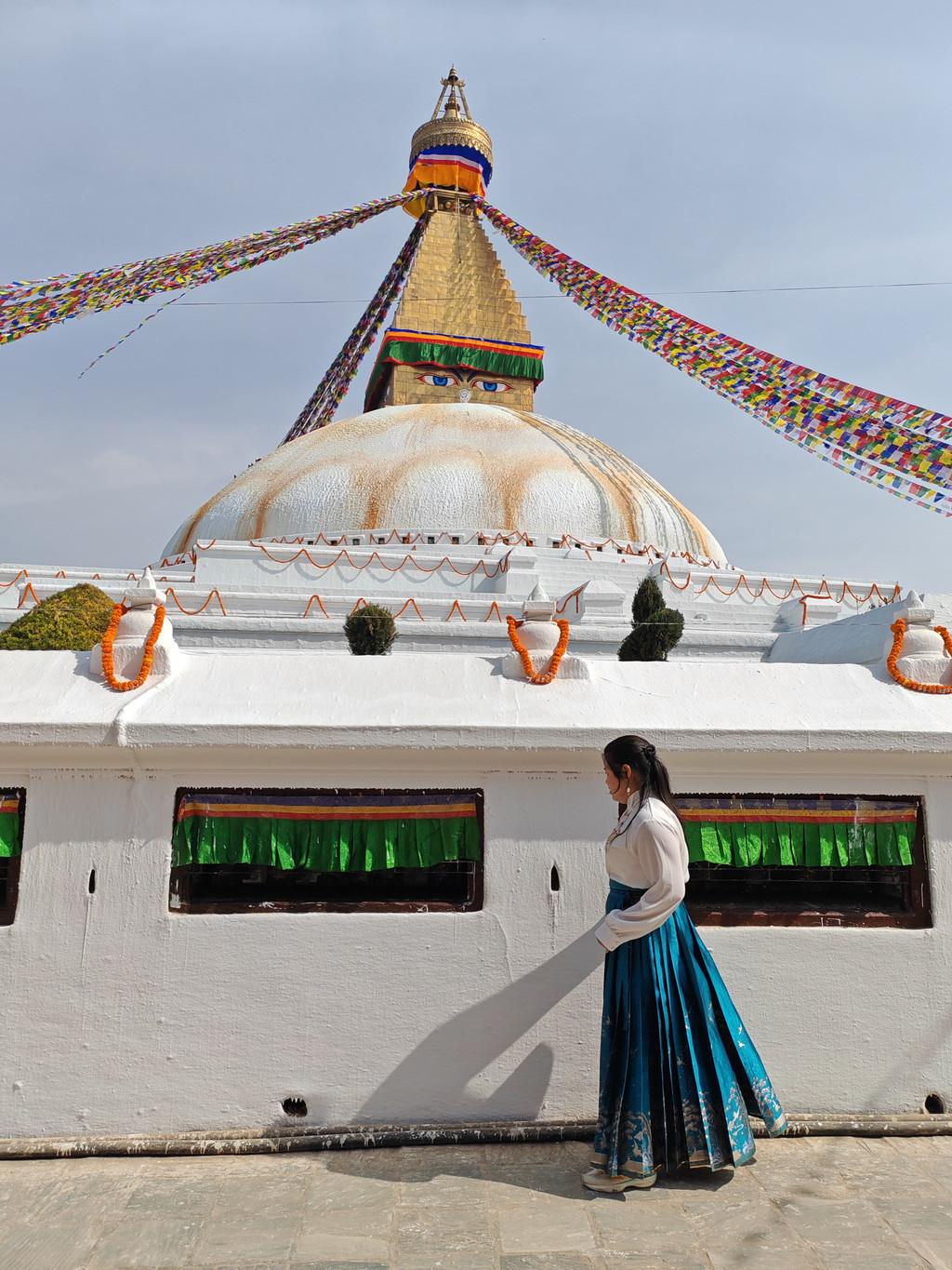 尼泊尔 时间三点左右入睡,上午11点以后出发前往杜巴广场。 尼泊尔 的杜巴广场因为地震有部分建筑正在修复,但是整体不影响参观。这个广场初看真的感觉没什么意思,但是实际拍照是非常出片的。 尼泊尔 的活女神就供奉在这里,广场内有一个国王的雕像,他面对的住所就是供奉活女神的地方,很可惜活女神只允许 印度 人参观,我们也只能站在外面看看了。