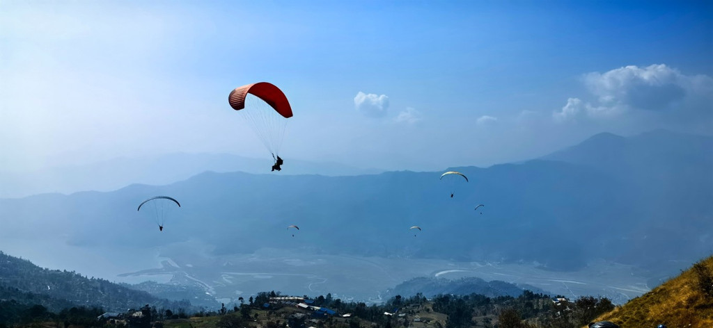 今天是整个行程中最期待的一天,因为我们要亲身体验”等风来”。九点出发去往山顶,准备飞行,到了以后我们先爬上了山顶,幸运的看到了喜马拉雅山的鱼尾峰,很多人都是为他而来。等风来后,我们就开始了滑翔伞之旅,飞出去了那一刻感觉整个人都自由了。可惜当天天不是特别好,所以景色会差一点。另外现在飞行是只能看到喜马拉雅山的一点头,因为原来滑行的区域,因为建设机场,已经成为了禁飞区域。