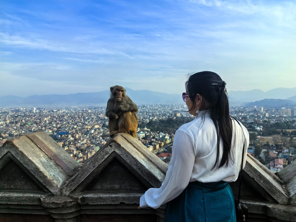 这里的猴子也没有峨眉山那么野,而且可以俯瞰整个 加德满都 的全景。