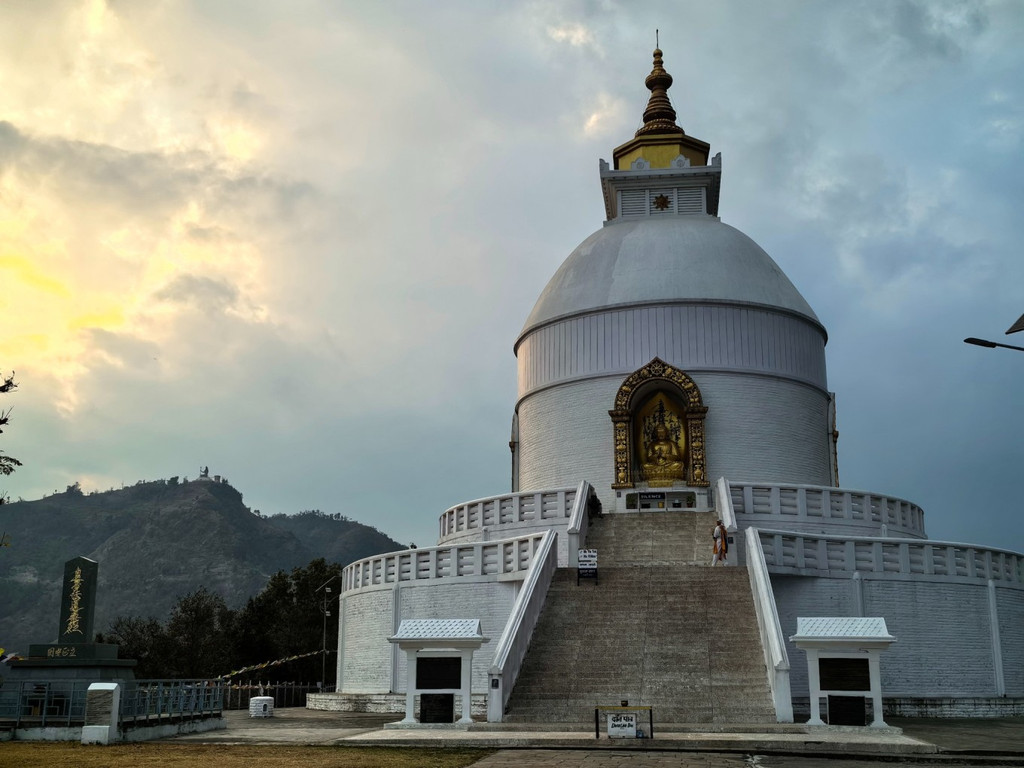 然后去世界 和平 塔,这里确实是值得一观的。矗立于 尼泊尔 博卡拉 山顶上的世界 和平 塔,有幸遇到一位 日本 僧人敲着鼓,唱着梵音在礼佛。