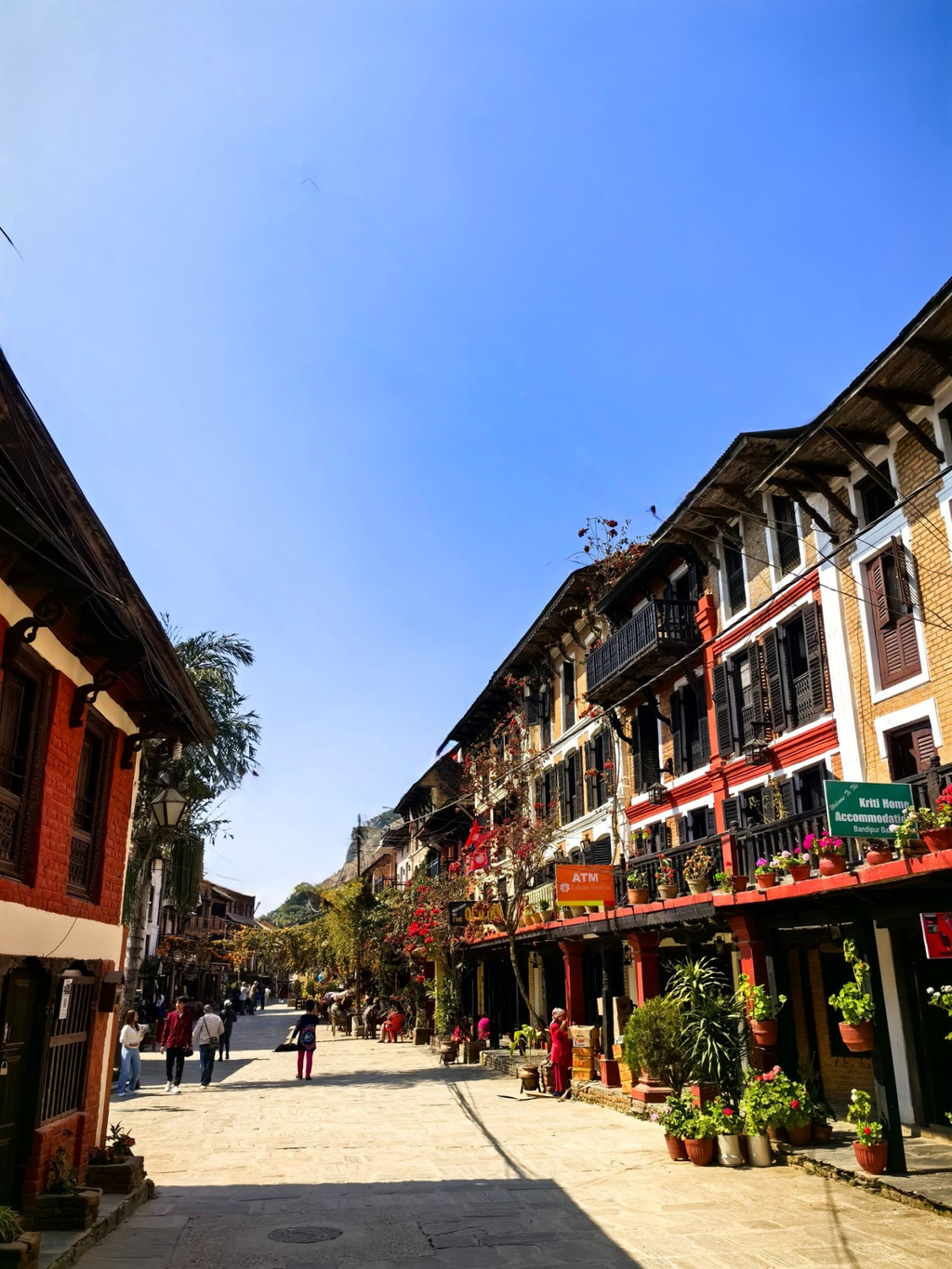 行驶两个小时,我们去了当地的班迪布尔小镇,这里历史悠久、风光旖旎。是 尼泊尔 纽瓦丽传统文化保留最完整的地方,70%的建筑是传统纽瓦丽房屋,红砖结构,有着雕花木窗和围栏,房檐外展有石顶。