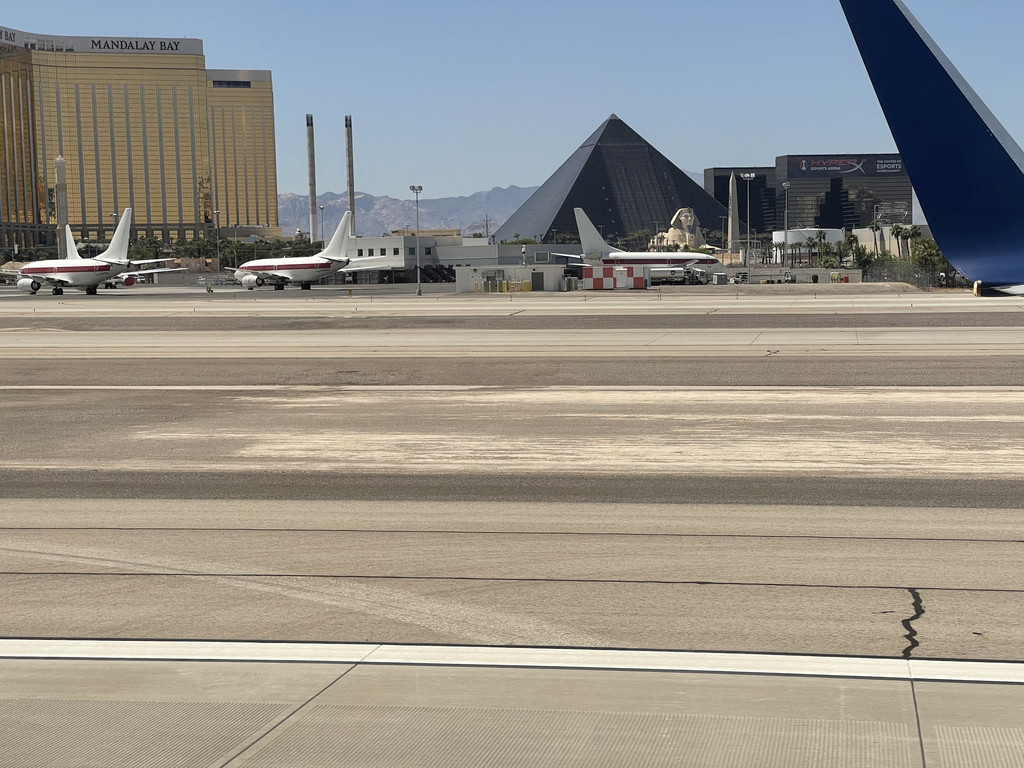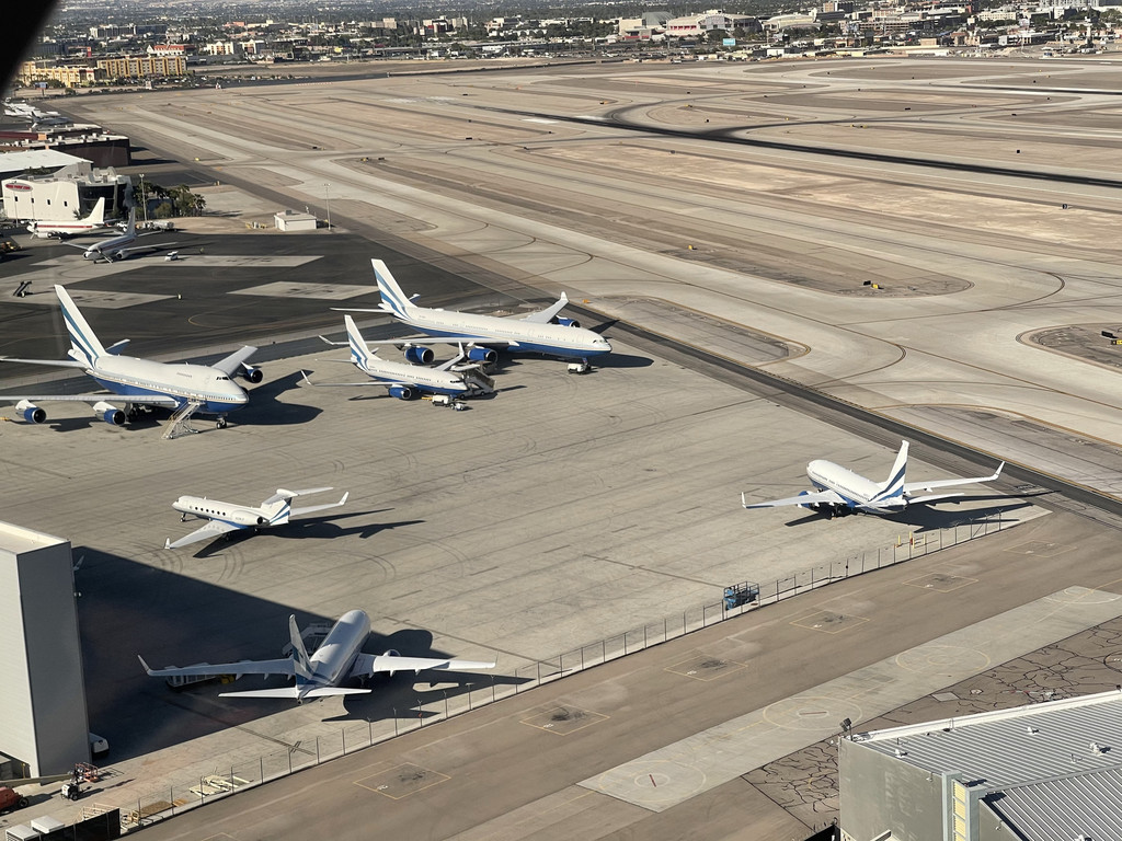 终于抽出空整理一下2021年5月末和室友们本科毕业旅行的行程。鉴于所有室友都在2021年上半年年满21岁,我们选定了拉斯维加斯作为我们的毕业旅行目的地。各种娱乐设施的体验自然是必不可少,车程不远的胡佛水坝和大峡谷西峡也是一定要打卡的地标性景点。南加州后勤机场算是一个比较小众的景点。我们做行程时发现拉斯维加斯距离位于加州维克多维尔的南加州后勤机场不远,那里是众多退役和封存的民航机的存放地。我们便决定在维克多维尔附近的苹果谷机场租用小型飞机,从天空中参观拍摄南加州后勤机场。