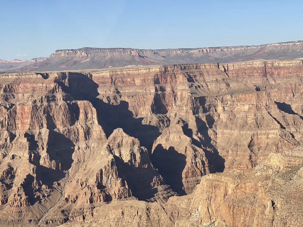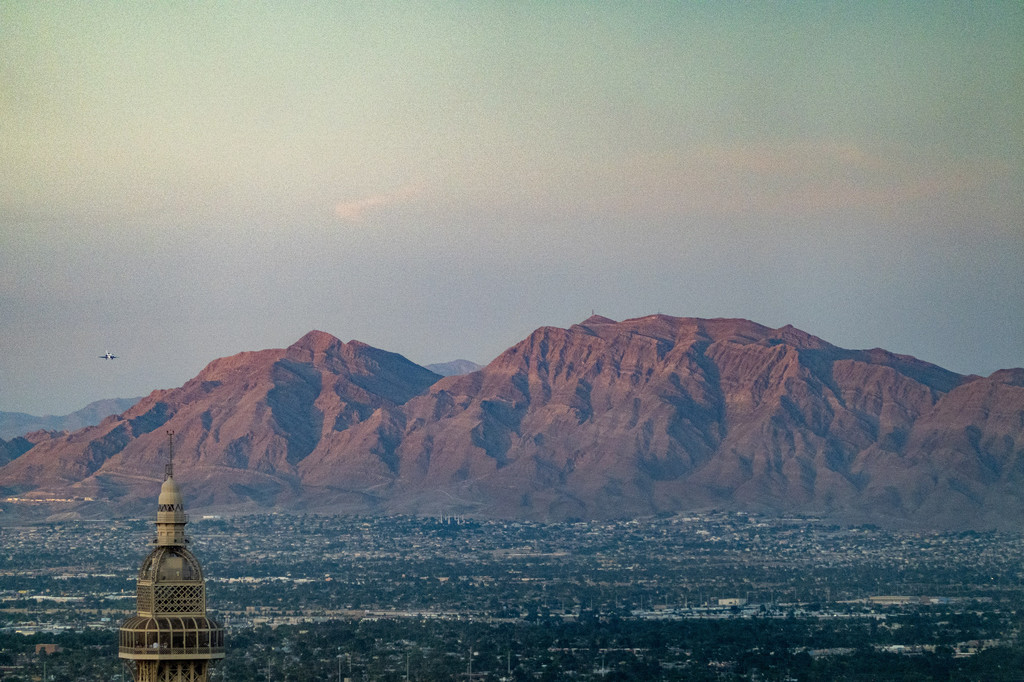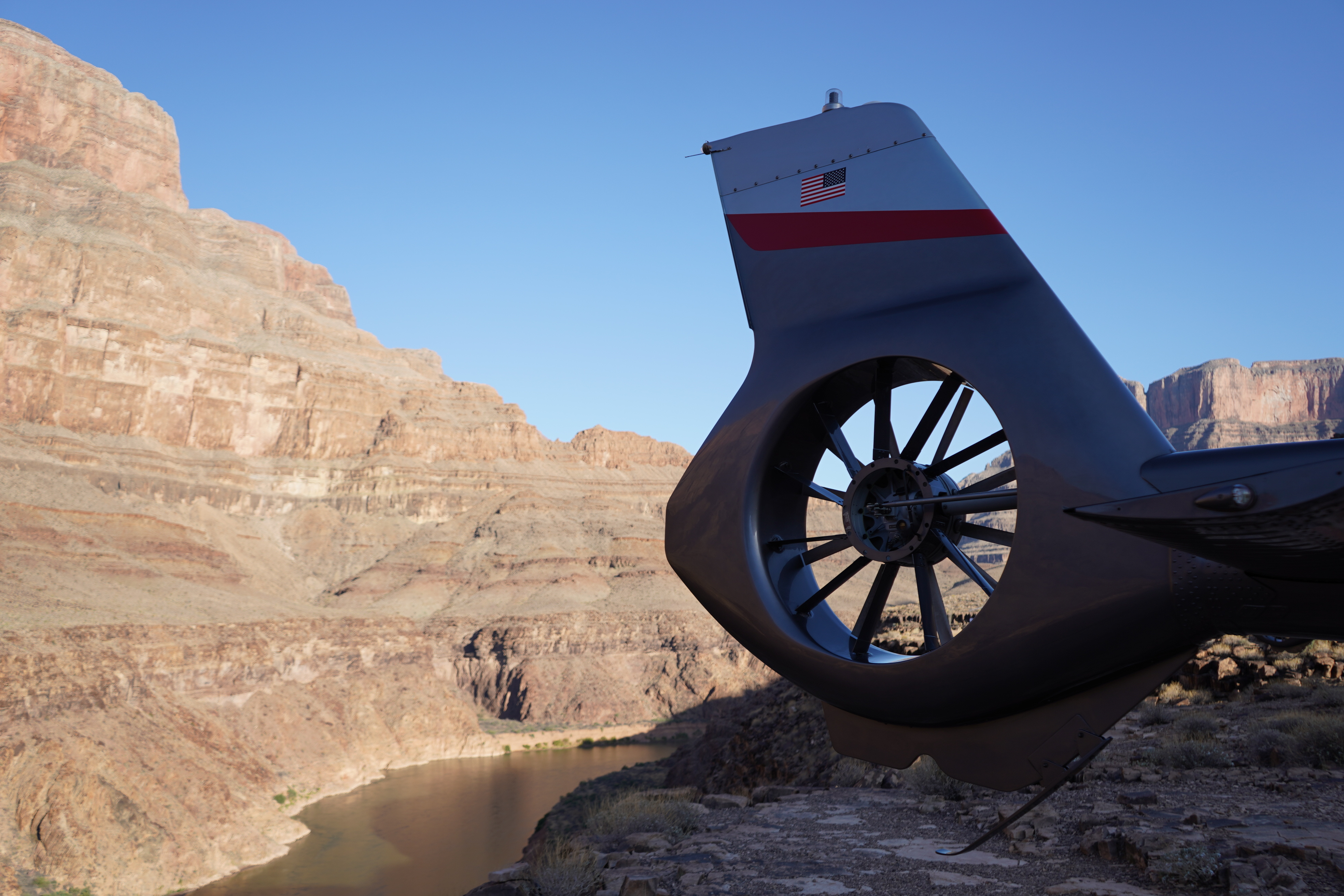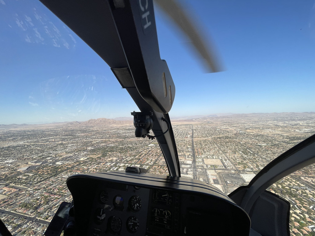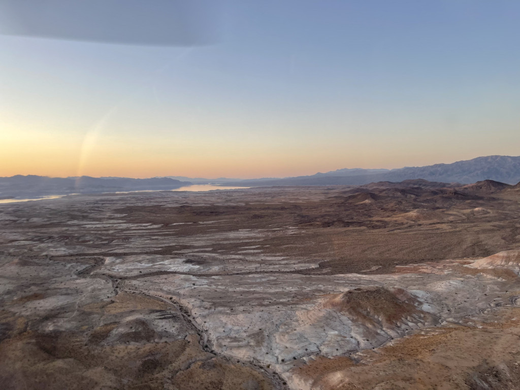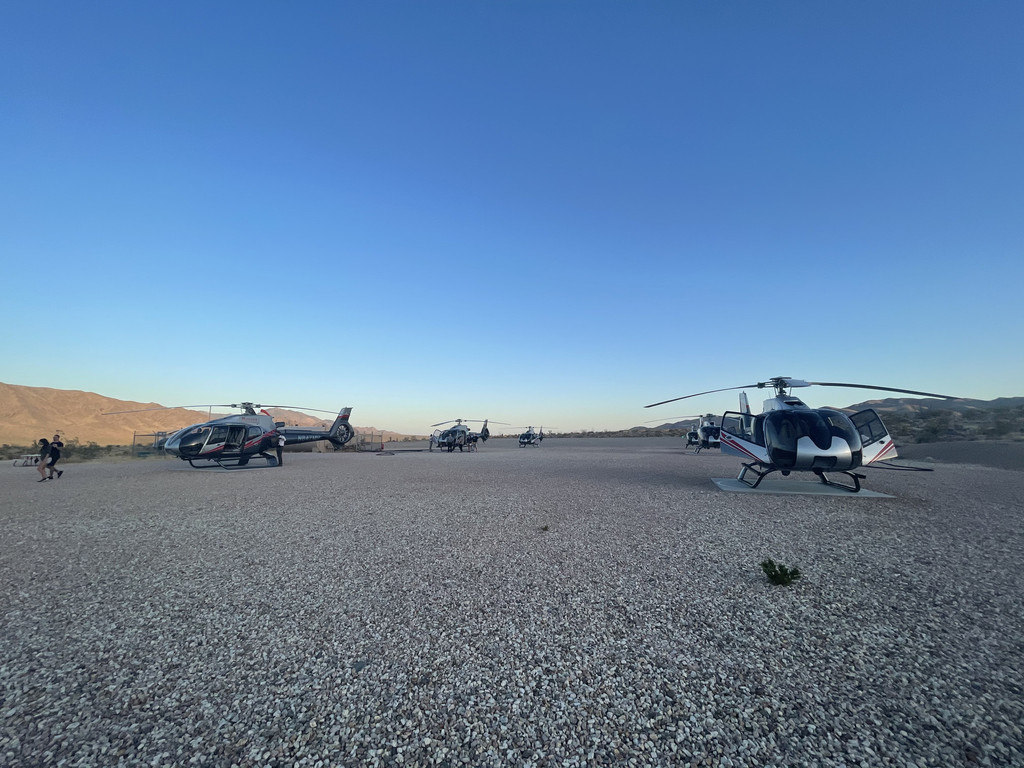 今天的重头戏是乘直升机游览大峡谷。我们之前在Maverick Helicopter预定了六人的大峡谷之旅,下午五点从拉斯维加斯机场起飞,飞跃胡佛水坝后继续深入大峡谷,在一个私人起降场降落后稍作休息,然后在夜幕中返航拉斯维加斯,全程大概三个半小时。票价是一人$499,不过考虑到可以在短短三个小时内空中游览这么多景点,以及中途提供的酒水点心,感觉性价比还是可以的,毕竟天上的观景和拍摄视角确实不错。下订单时填写住的酒店名字,到时候会有巴士接送。