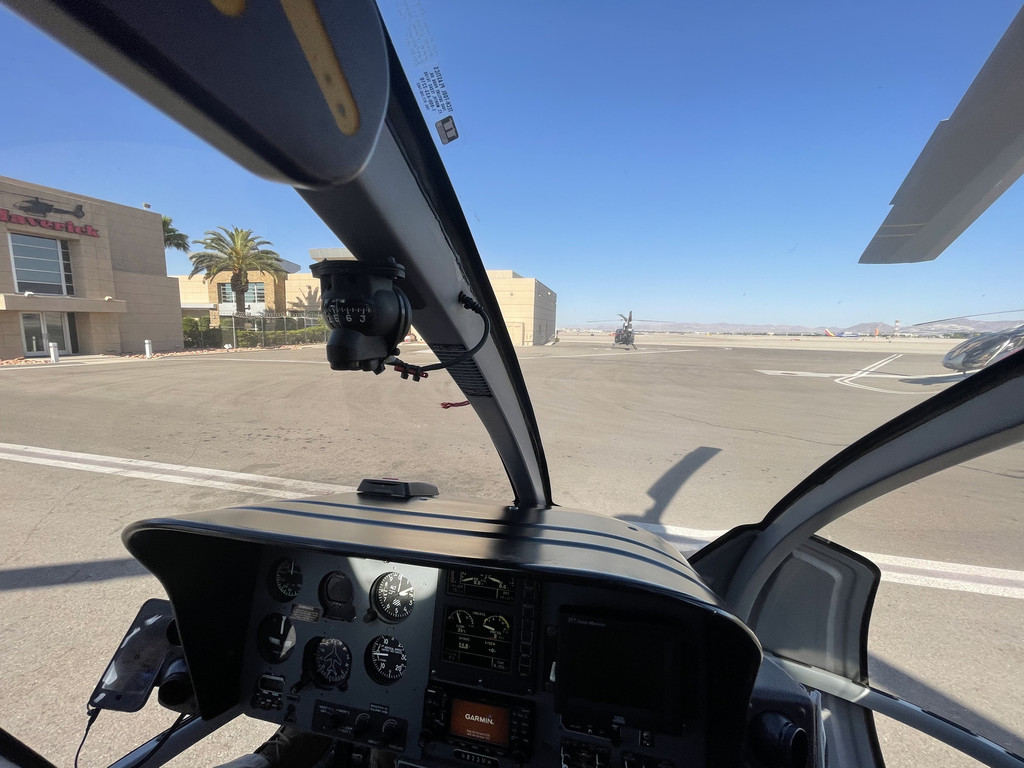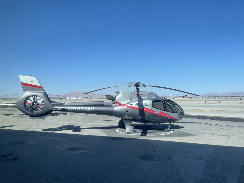 四点左右在酒店门口坐上接驳巴士,15分钟后到达Maverick Helicopter在拉斯维加斯机场西侧的专用航站楼。Check in的时侯会发号码牌告知是几号机。稍作休息后飞行员会喊大家集合,在做安全须知讲解后便登机起飞。