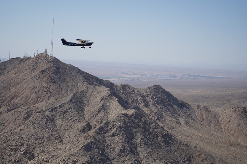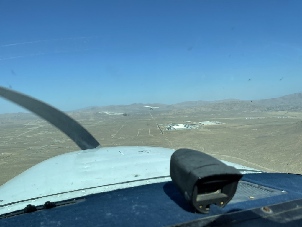 我们一行一共四人,分乘两架飞机。博主和女朋友一架,博主驾驶,并有一名飞行教员在右座提供一些飞行指导。同行的其他两位朋友乘坐由另一位飞行教员驾驶的飞机。南加州莫哈维沙漠的气候和博主熟悉的美国中西部平原的气候大有不同。莫哈维沙漠的高温、高海拔要求飞行员对发动机的转速、燃油的供给量等有着更高的精准度要求。