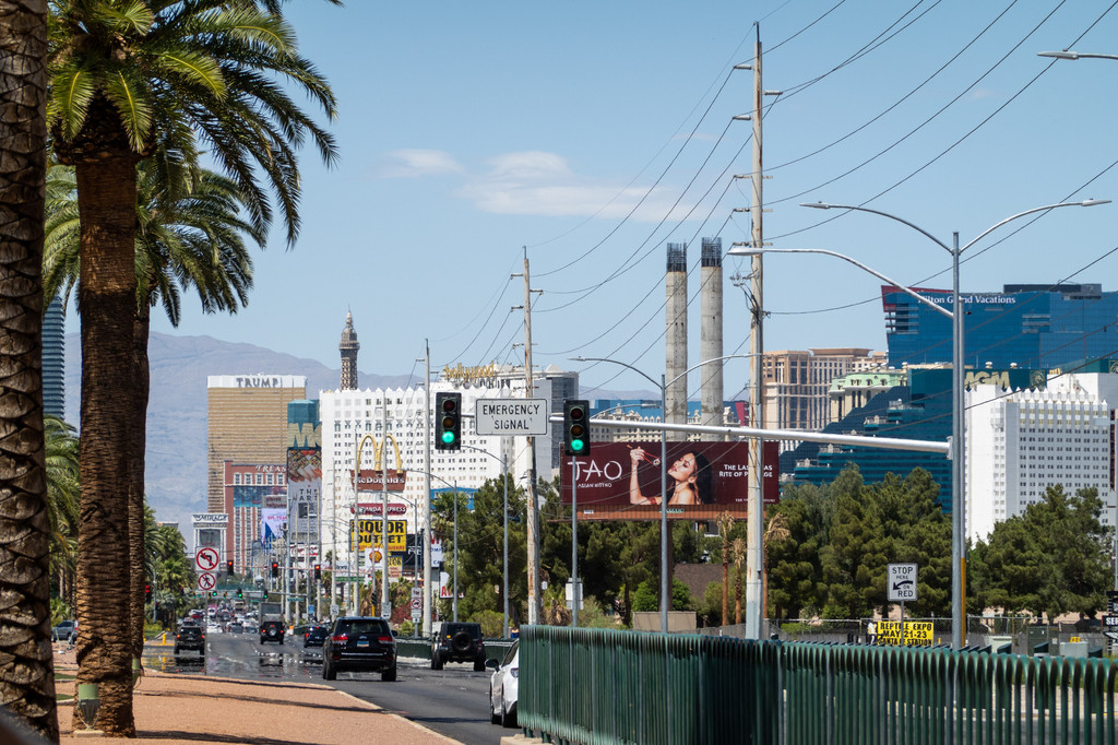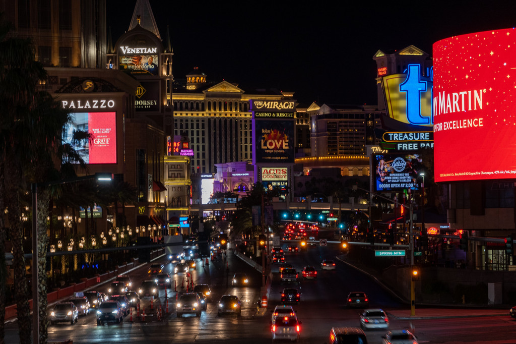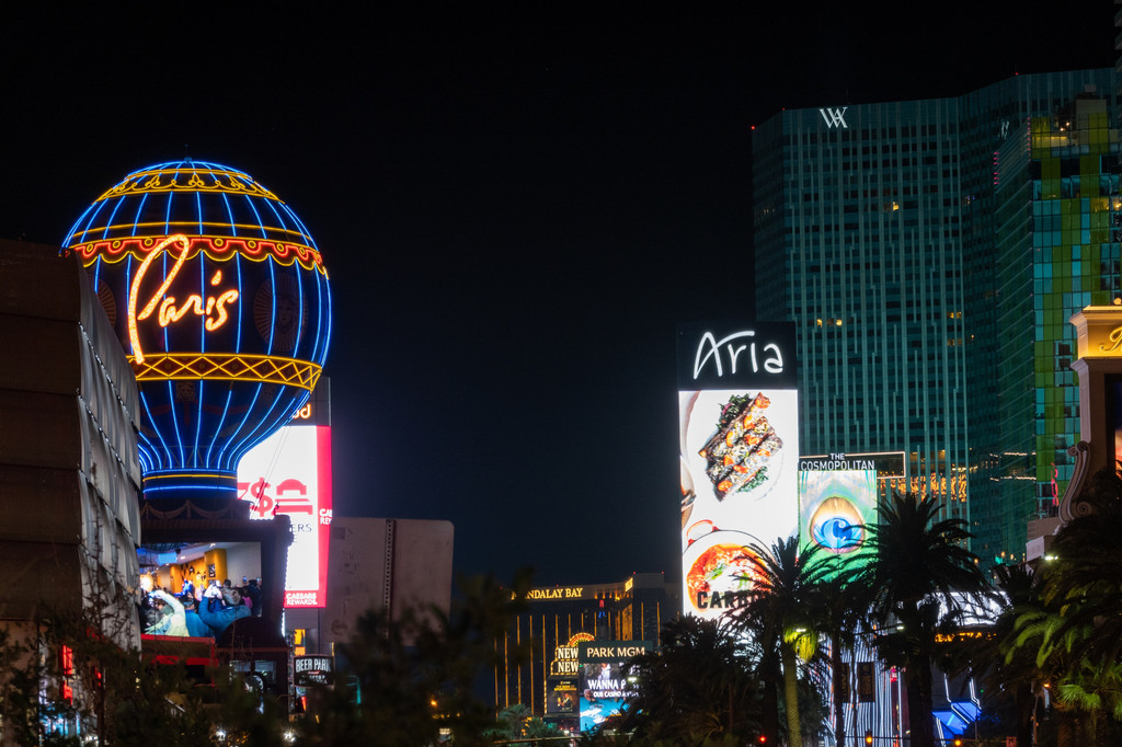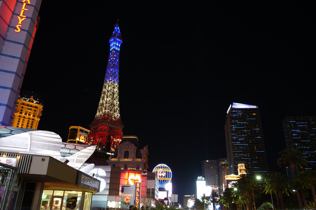 把车停回酒店,顺着拉斯维加斯大道向南走消消食。夜幕下的拉斯维加斯真的很出片。