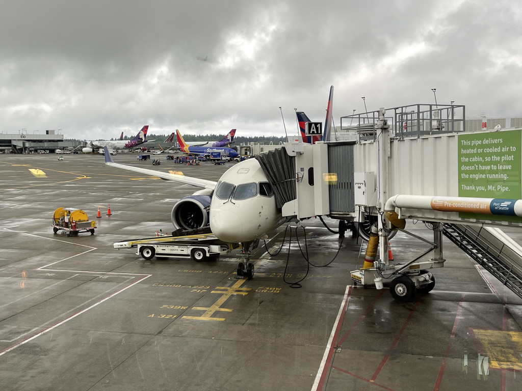 酒足饭饱,踏上回村的路程。稍微留出点时间还车,坐接驳巴士到航站楼还需要一点时间,晚上八九点也是一个还车的高峰期,排队等巴士的人也不少。乘坐红眼航班飞行一夜,次日早上在底特律转机后于中午到达芝加哥。