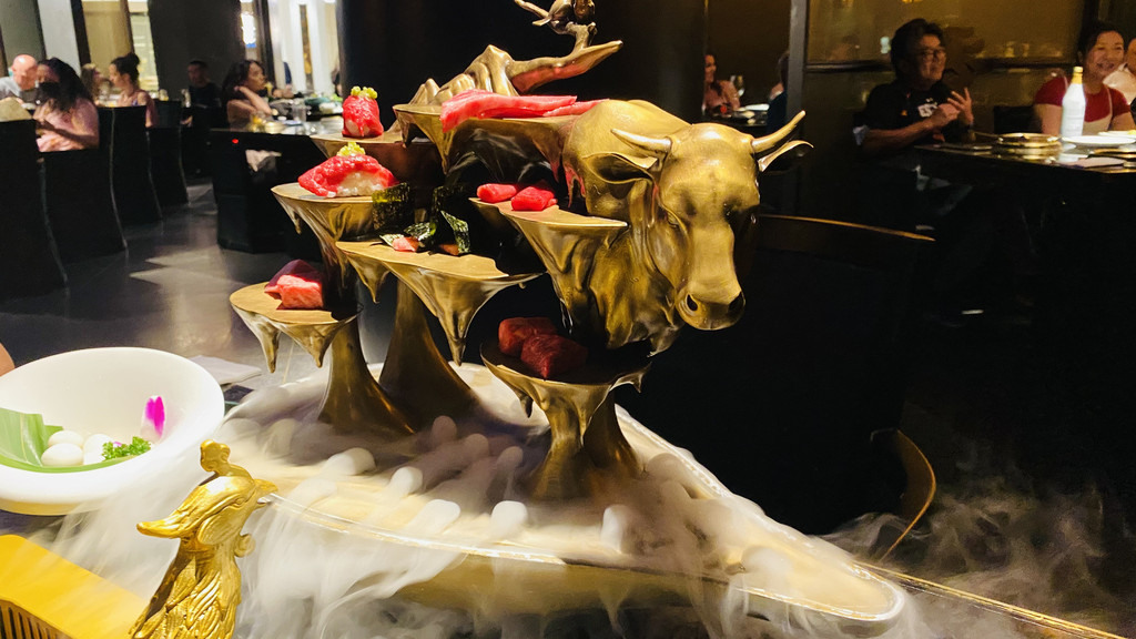 这次拉斯维加斯之行的最后一顿晚饭在以和牛火锅为特色的X Pot吃,需要提前一两天预约。可以点固定套餐也可以单点。个人感觉人多的话点一份小一点的套餐再单点一些菜肴会比较划算。龙虾汤底还是第一次见。和牛的软嫩也是没得说。人均花费要比海底捞等其他火锅店高出一些,不过考虑到食材的质量算一下性价比感觉还可以。