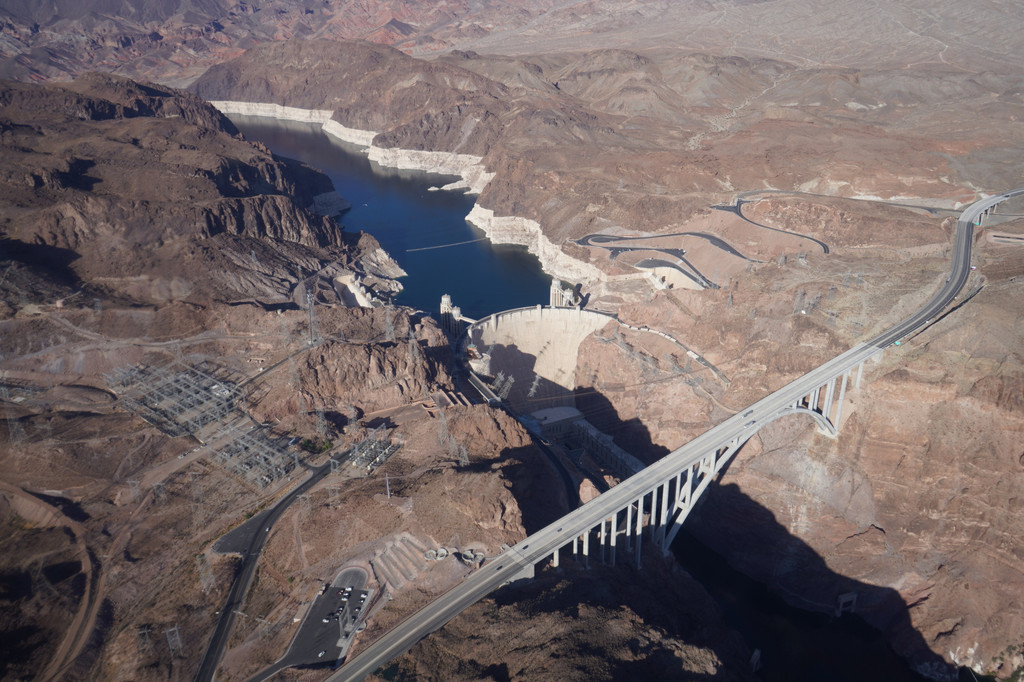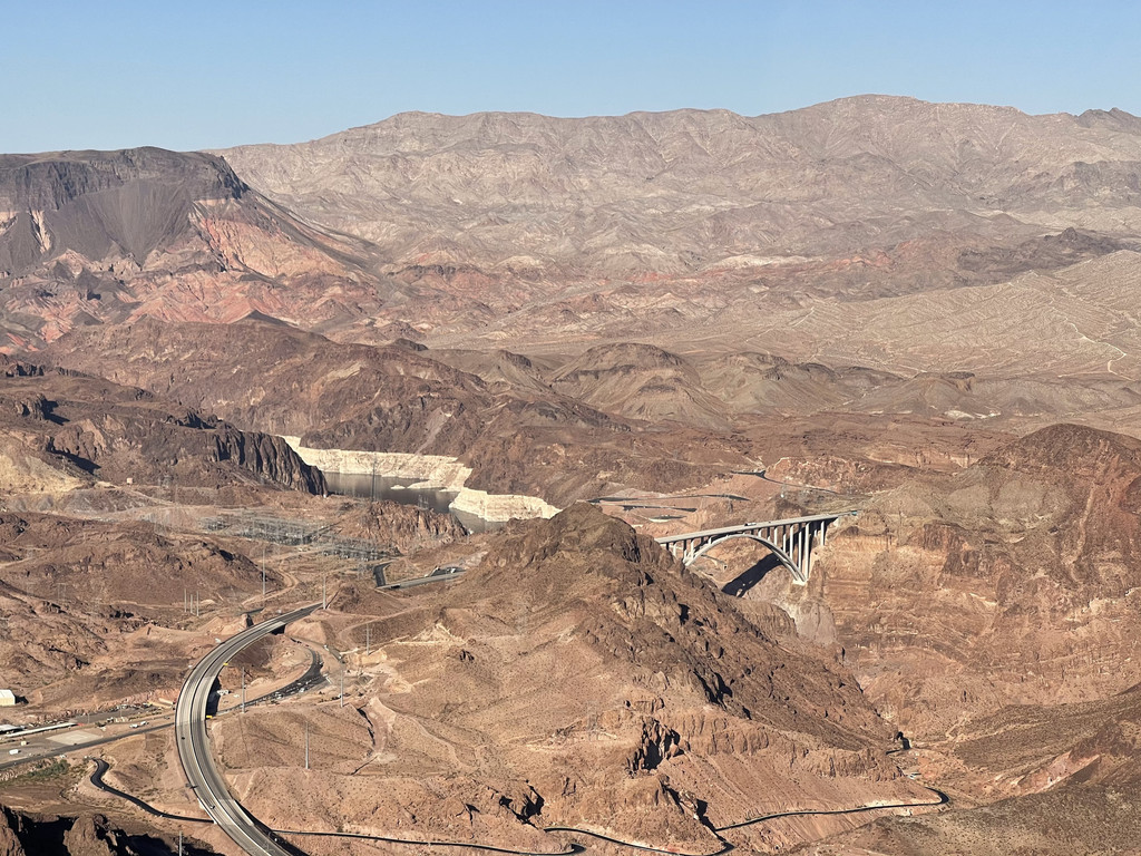 看着时间还早,大家一合计决定开去亚利桑那州的西大峡谷公园,单程车程两个多小时。西大峡谷公园的玻璃步道还蛮有名的,之前在很多大峡谷的旅游宣传片中都有看到过,算是一个地标性景点了。公园里的Eagle Point等观景点也都很有特色。拉斯维加斯市区到西大峡谷公园途中会路过胡佛大坝。11号州际公路在靠近胡佛大坝的地方有一个出口可以开上内华达172号州道(Hoover Dam Access Road),有观景台,也可以开车从胡佛大坝坝顶驶过。由于前一天已经在空中拍摄了胡佛大坝,我们便没有在中途停车。