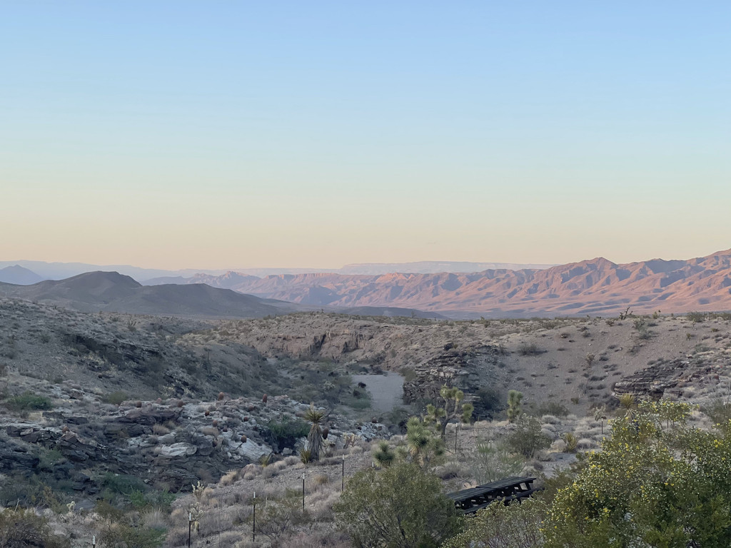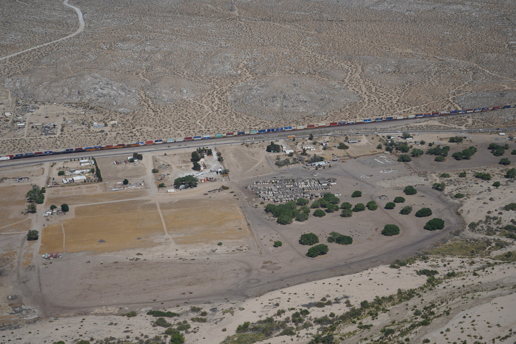 返回拉斯维加斯路上需要降落加油。起降场附近有很多莫哈维沙漠独有的约书亚树(Joshua tree)。