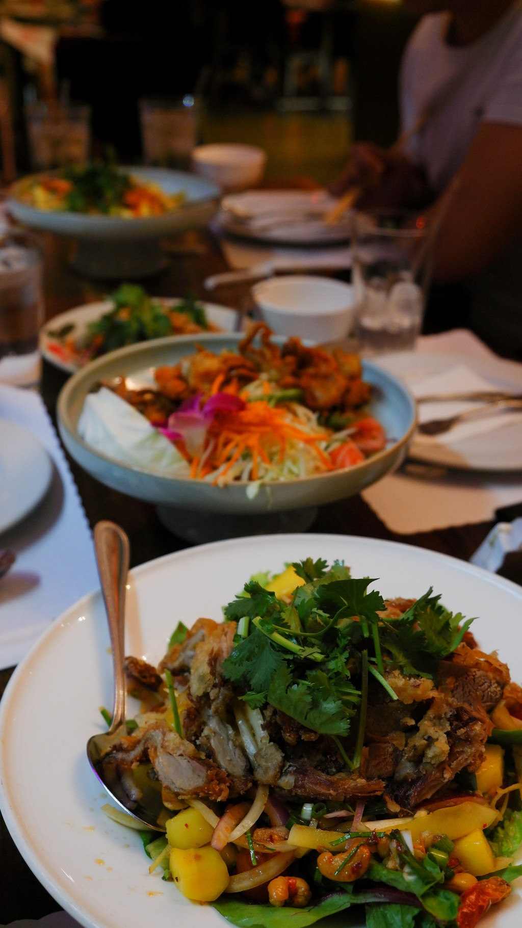 一把头开回拉斯维加斯。本来计划晚餐去鼎泰丰吃小笼包,结果发现排队等位的人实在太多,只能更改计划。大伙搜索一波后决定去一家叫Weera Thai的泰国菜餐厅。菜量比想象中要多很多,一份沙拉的量赶得上一份主食。六个人干完三份沙拉后就已经有了饱腹感。本来以为一份冰激凌是一个球就多点了几份,结果上来发现是三个球。为避免浪费,大家只能在吃撑的情况下再强塞几个冰激凌球。