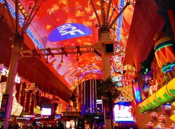 在喧闹动感的拉斯维加斯老街,这里的华丽与激情动感的街舞及摇滚音乐交相辉映。天幕上的视频表演,随着动感十足的音乐变幻无穷,令在老街人们无不激情澎湃。如果你想了解什么叫美轮美奂?什么叫纸醉金迷?什么叫花天酒地?什么叫激情四射?只有在这里才会有深刻的感悟。(图文:冯赣勇)