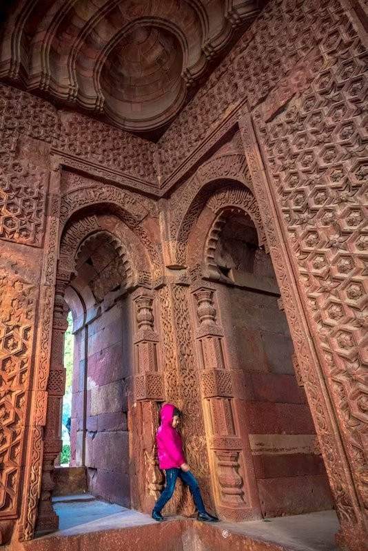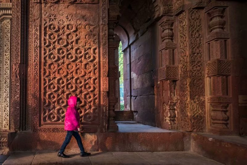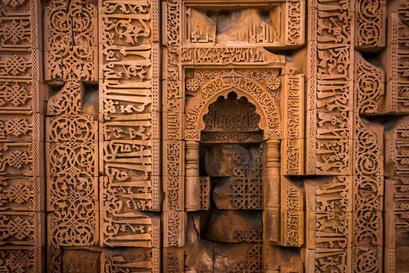 顾特卜塔周围还有一个苏丹陵墓和一座小巧的清真寺,它们多用几何图案、各种花纹做装饰,还将《古兰经》里的经文深深地镌刻进了这些建筑的石墙上。“万物非主,唯有真主”,安拉你是在告诫众生行善、慈悲么?