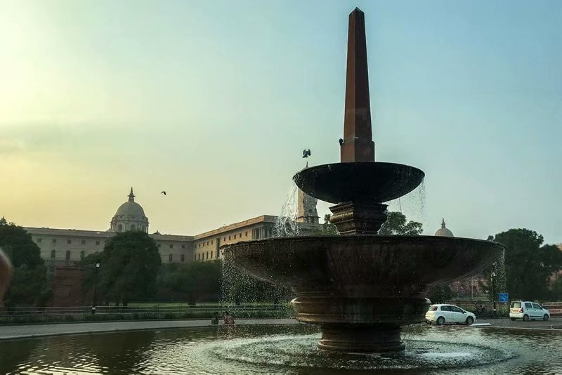 去往国会大厦,途经领事馆大道,这是我在印度看到的最干净、最宽敞、最平直的马路。印度被誉为“最大的民主国家”,国会大厦就是他们民主的最高殿堂。我觉得好的制度应该是能增进人民团结、能改善人民生活、生产力能保持持续的发展,独立建国只相差两年的两个古老大国相比较,当今的中国确实与印度已经拉开了十年以上的距离,可以毫不谦虚的说,中国模式比印式民主先进。