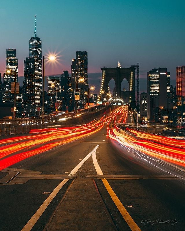 布鲁克林大桥是纽约的地标建筑,也是美国最古老的悬索桥之一。始建于 1883 年,这里曾是纽约海上贸易帝国的枢纽,是经历过美国独立战争的历史文物。在布鲁克林大桥上悠闲漫步,可以眺望自由女神像、纽约证交所,感受纽约这座城市百年的变迁和伟大。