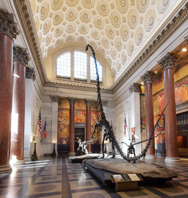 美国自然历史博物馆,位于曼哈顿上西区,是专注于天文学、地球科学、人类学、古生物学、生物学等的博物馆。该馆的主要收藏项目包括于各大洲哺乳动物的收集,以及人类学的馆藏。值得一提的是《博物馆奇妙夜》、《侏罗纪公园》、《老友记》都在这里取景,每年吸引着无数自然、电影爱好者前来游览欣赏。