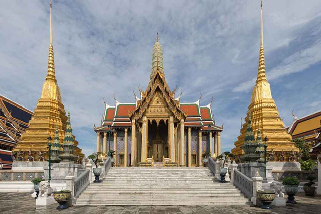 作为暹罗王室的皇宫,规模宏大、金碧辉煌的大皇宫在曼谷的文化之旅中一定是占据着重要地位的。坐落在曼谷的市中心,整座宫殿共有28座古建筑群,总面积超过20万平方米,不仅是泰国君主的故居,也是举行官方仪式如加冕典礼、宫廷庆祝等活动的重要场所。大皇宫集泰国建筑、绘画、雕刻和装潢艺术的精粹于一体,具有鲜明的暹罗建筑艺术特点,成为游客了解泰国艺术与文化的理想之地。