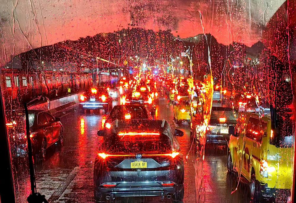 纽约市是美国第一大城市,全美最大的金融、商业、贸易、文化和传媒中心,位于纽约州东南部。图为大年夜仍然堵车的纽约高速公路。