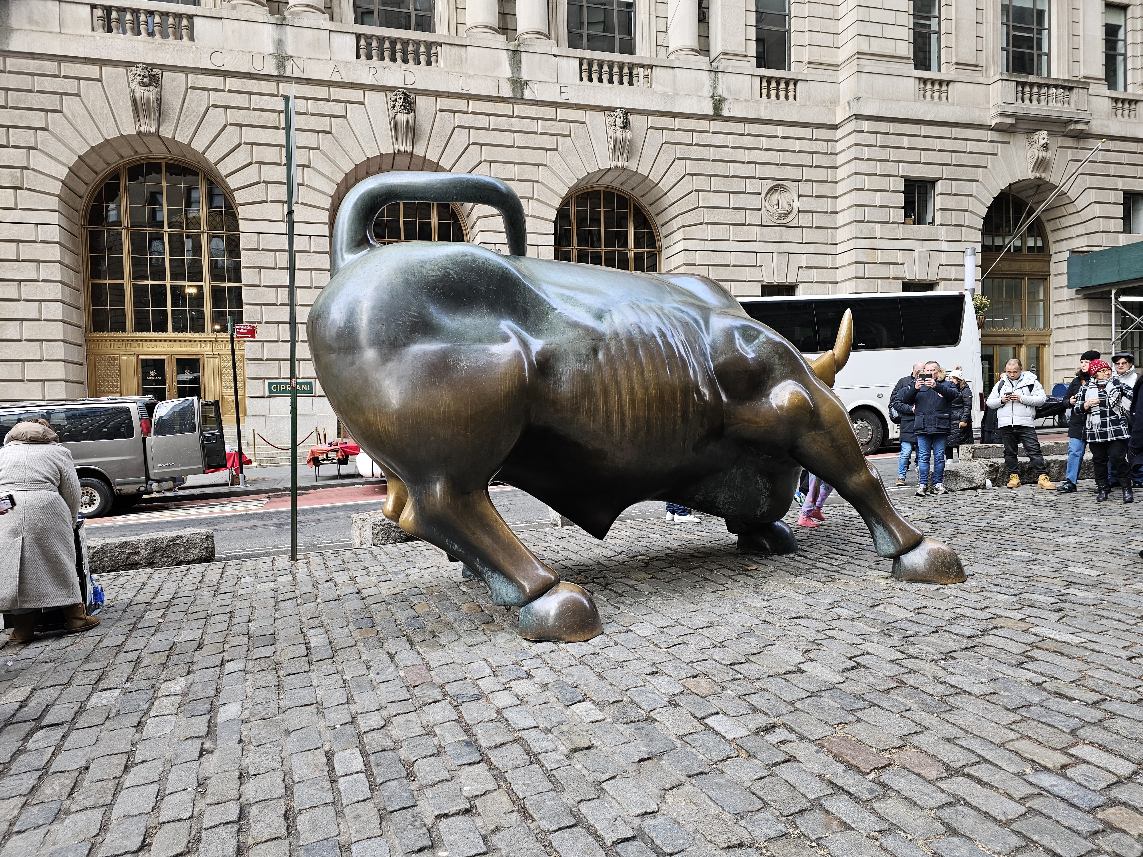 我是2025年1月19日在纽约旅游时,在导游的带领下看到了久已闻名的华尔街铜牛的。在相见之下就产生了疑问,明明是华尔街铜牛为什么不在华尔街上呢?为了这个问题,我请教了导游也查阅了相关的资料。才弄明白了其中的缠弯理曲。