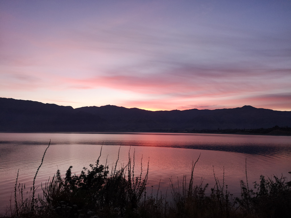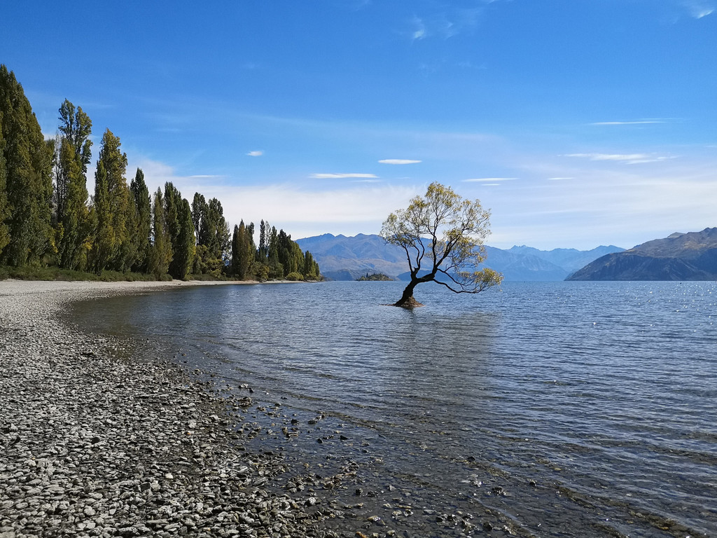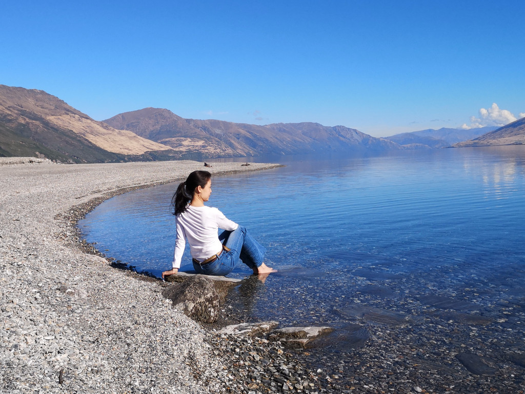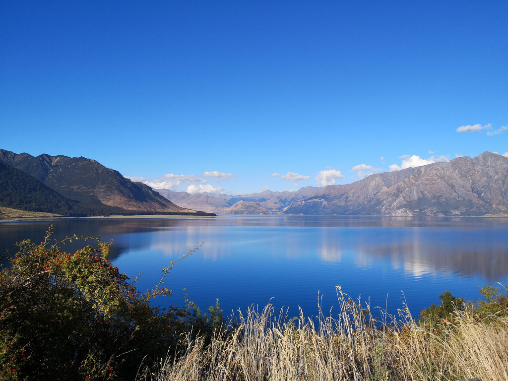 车子越往瓦纳卡开,景色愈加美。车子的左边是哈维亚湖(Lake Hawea),车子的右边是瓦纳卡湖,一个转弯就是一景,只要可以停车绝不放过任何一个可以拍照的机会,当晚入住瓦纳卡湖边的营地。