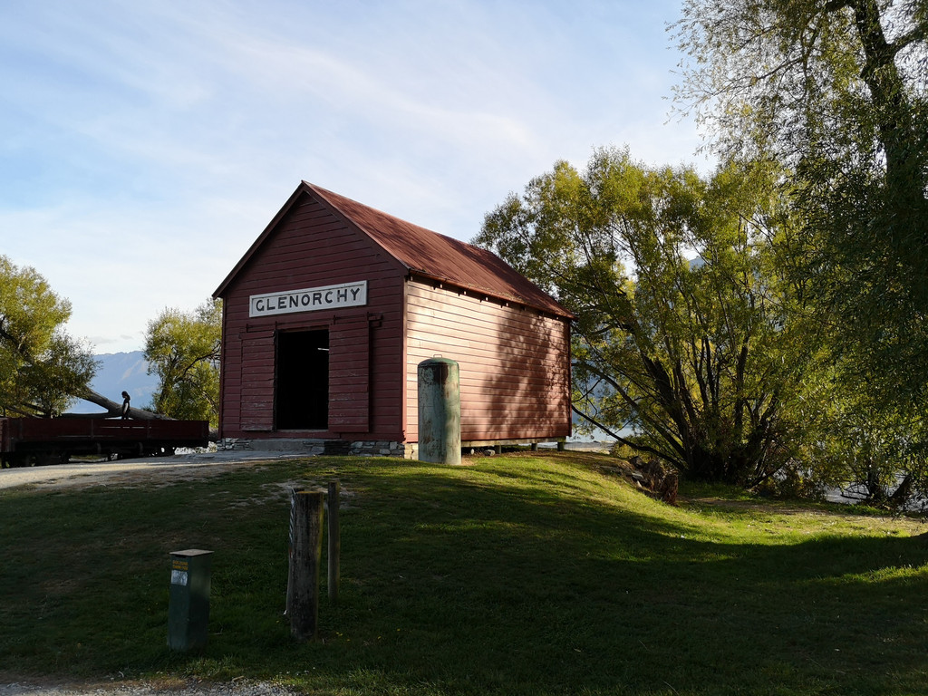D12格林诺奇(Glenorchy):美其名曰天堂镇 一早先去还房车,还车手续简单,很快就办好了。附近就有小车租赁公司,租了一辆SUV,设置好导航向格林诺奇进发。格林诺奇位于皇后镇西南部,沿着瓦卡蒂普湖,一个转弯就是一副美景,千万不要错过每一个可以停车拍照的观景台。到达格林诺奇大约十一点,在镇上吃了午餐就往景区赶。这应该是湿地公园,景区南边步行道全程大约45分钟,景观更多的集中在南边。远处是南阿尔卑斯山,山顶有些积雪,像顶白帽子。近处的草一片金黄,把蓝色的湖水染成金色,湖里野生黑天鹅悠闲的玩耍、嬉戏、觅食,我们踏着草地想要近距离拍天鹅,但草地松暖,担心陷入沼泽赶紧退回步道。走走停停,回到镇上找了一家旅馆住下,感觉这家旅馆应该是挺古老的,大厅放置的老物件述说着岁月的痕迹。床上用品,毛巾等物品倒干净整洁,值得推荐。在酒店里稍事休息,我决定乘天还亮去走一下北边的环线。北边环线其实跟南边差不多,少了水和野天鹅感觉就逊色不少。这时朋友在微信里招呼我快点到酒店边上的湖边,说是找到了我说的七棵长在水中的树,还有红色的湖水。连忙往湖边赶,果真,湖水是红色的,原来岸边有一片红色沙土,把清澈的湖水印成红色。七棵山毛榉一字排开。据说是因为这里的山水太美,七仙女下凡后不愿离开,变成七棵小树守在这里。湖边天鹅成群结队的,不知是野生的还是养殖的。