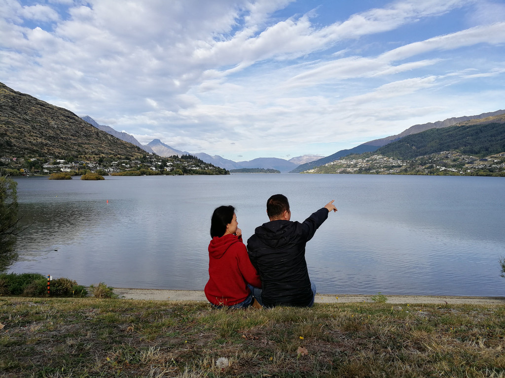皇后镇依山傍水一个很繁华的小镇,被南阿尔卑斯山环抱,南临瓦卡蒂普湖(Lake wakatipu)。房子环湖而建,逐渐向山坡延伸。我们找了一处僻静的湖边停车,沿着湖向镇中心走。湖边有个金发帅小伙弹钢琴,悠扬的琴声伴着湖光山色真让人赏心悦目。镇上商业气息浓,游客也多,我们也自然的加入到购物行列。