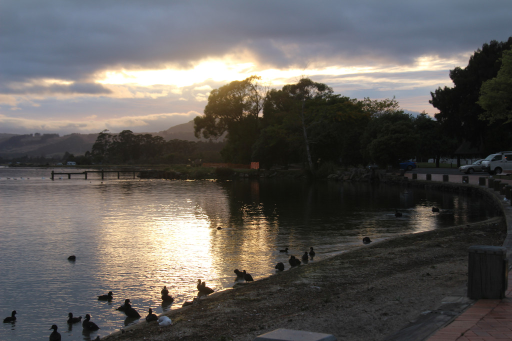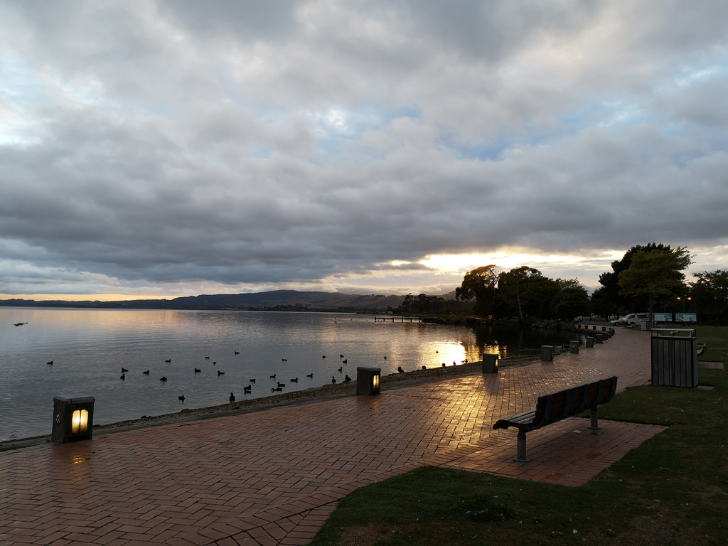 景点看完大约下午3点,大家决定继续在罗托鲁瓦过一夜,找个离湖近的酒店,傍晚拍拍日落,再泡泡温泉,明天一早再回奥克兰。