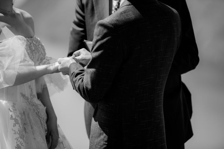 仪式开始后,我们交换戒指和誓词,没错,我又是鼻子酸酸,眼睛红红。因为没有亲朋好友在,所以我也没那么用力的做表情管理,仪式结束后重新补拍了仪式照。我们的誓词也没有那么多客套话。就是把心里想说的话讲给对方,他的每一句话好像都在波动我的泪腺。