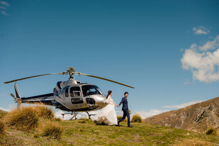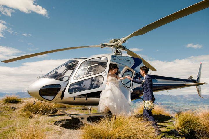 直升机机场的机长大叔早已等候多时,我们在飞机上握着手看着山河慢慢开阔,直到完全打开,视觉冲击让我瞬间热泪盈眶。我们就要在这里,结婚了呀!