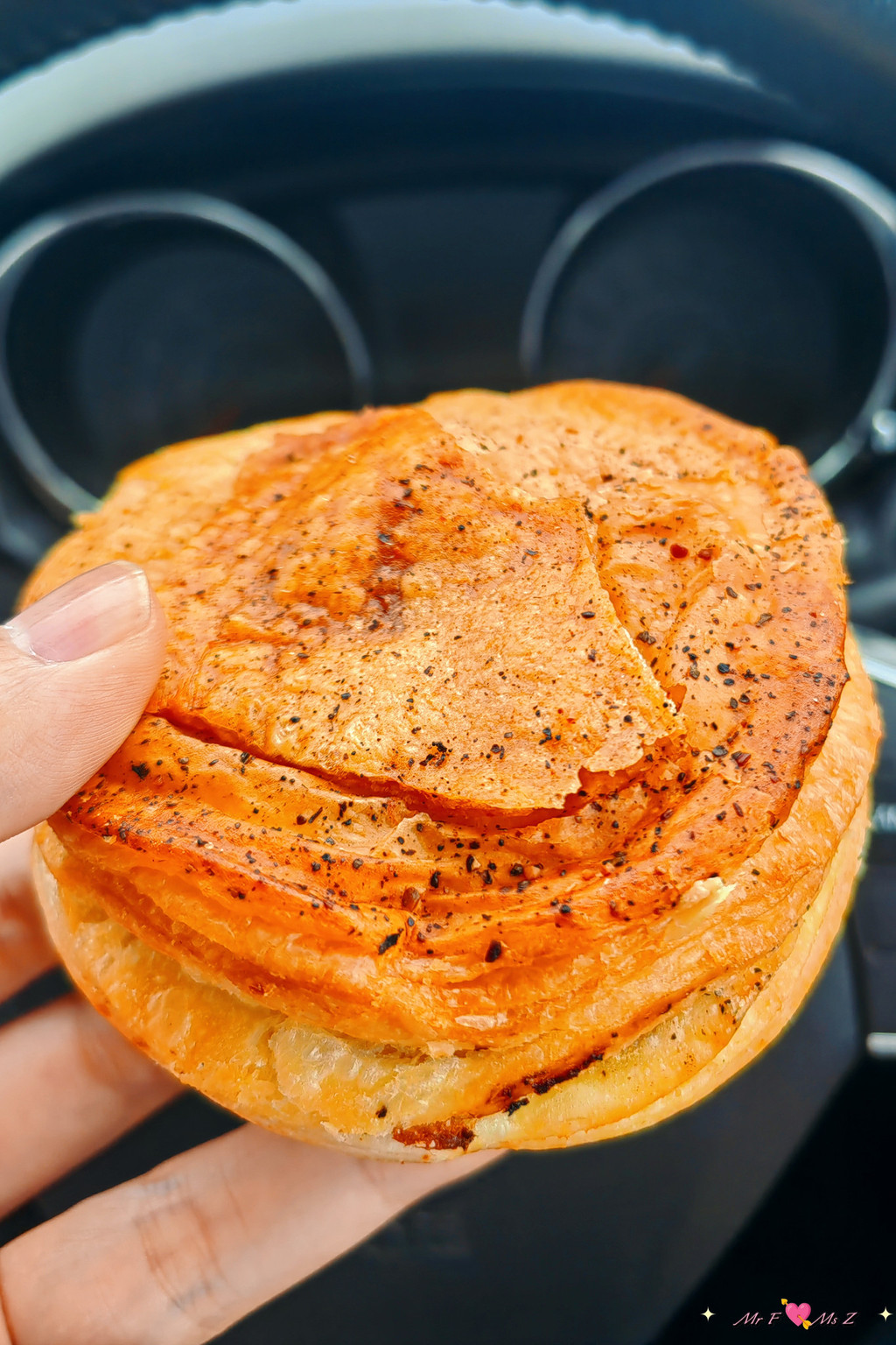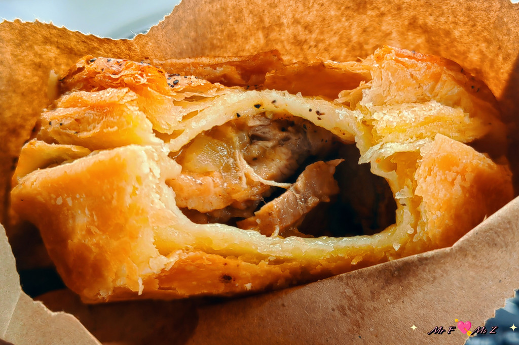 金黄酥脆的外皮轻轻一碰便层层剥落,散发出浓郁的黄油香气。内馅则是慢炖至软糯的五花肉,肥瘦相间,入口即化,搭配浓厚的苹果酱,层次丰富而不腻,每一口都能感受到肉质的鲜美与酥皮的香脆。